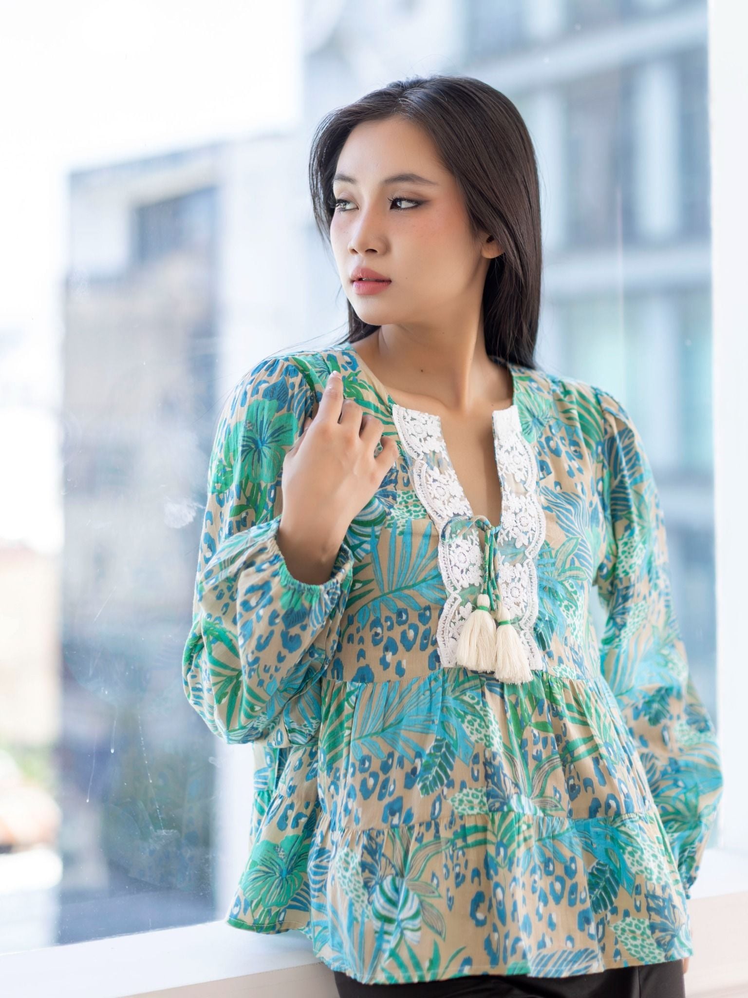 Maxi Sơ Mi Xanh Cotton Isla Bonita