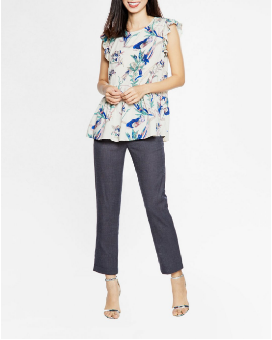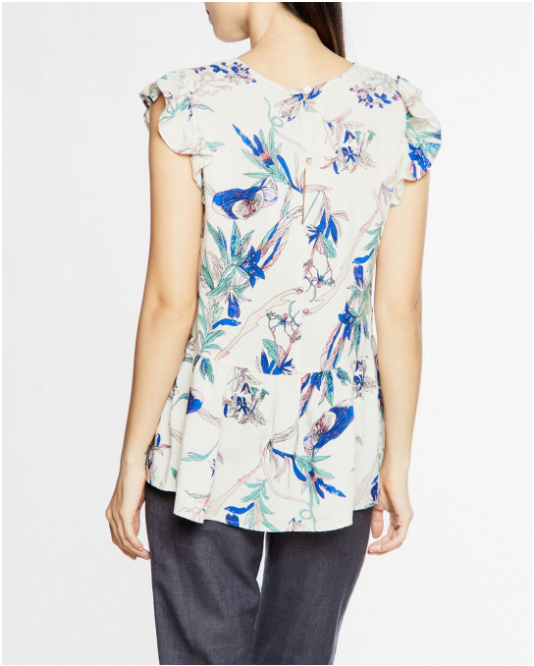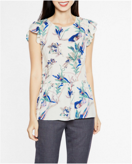 Áo cổ tròn tay bèo họa tiết hoa kiểu dáng đơn giản, màu sắc trang nhã, thời trang.