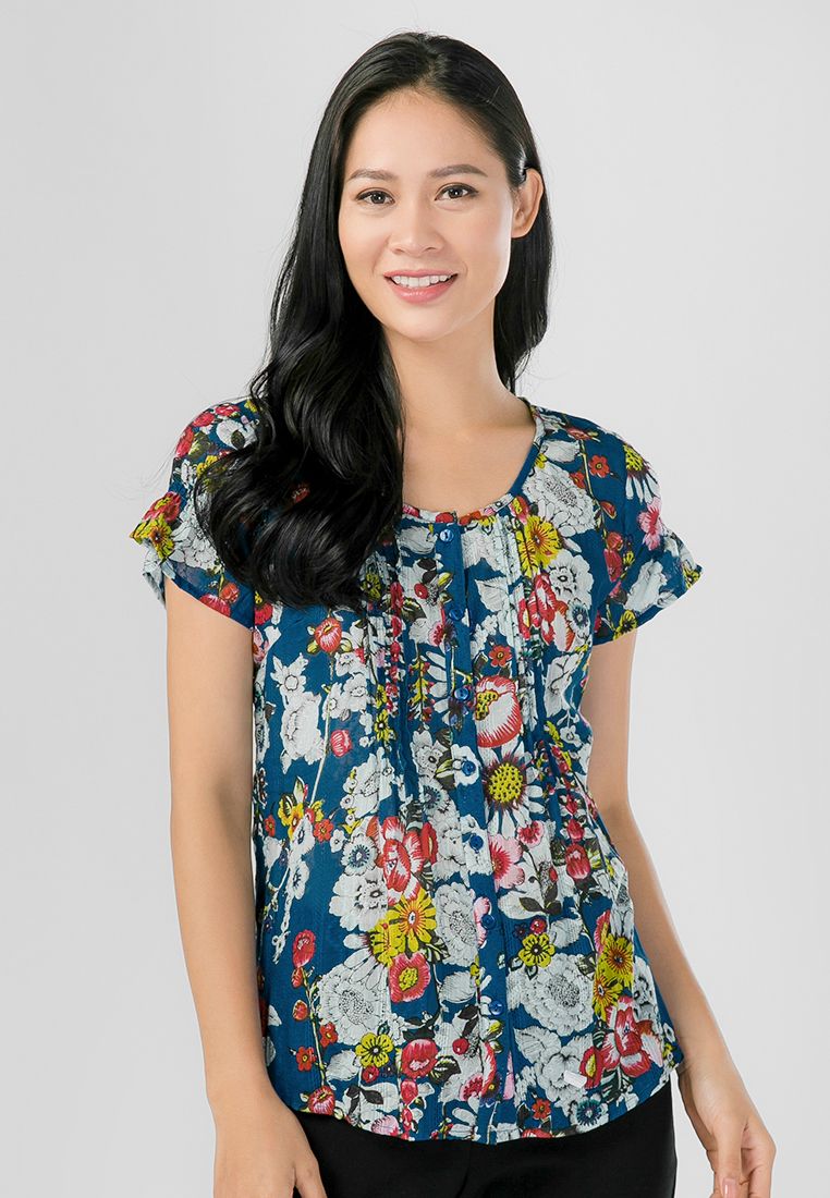 Áo sơ mi phối hoa, kiểu dáng đơn giản, màu sắc trang nhã, thời trang.
