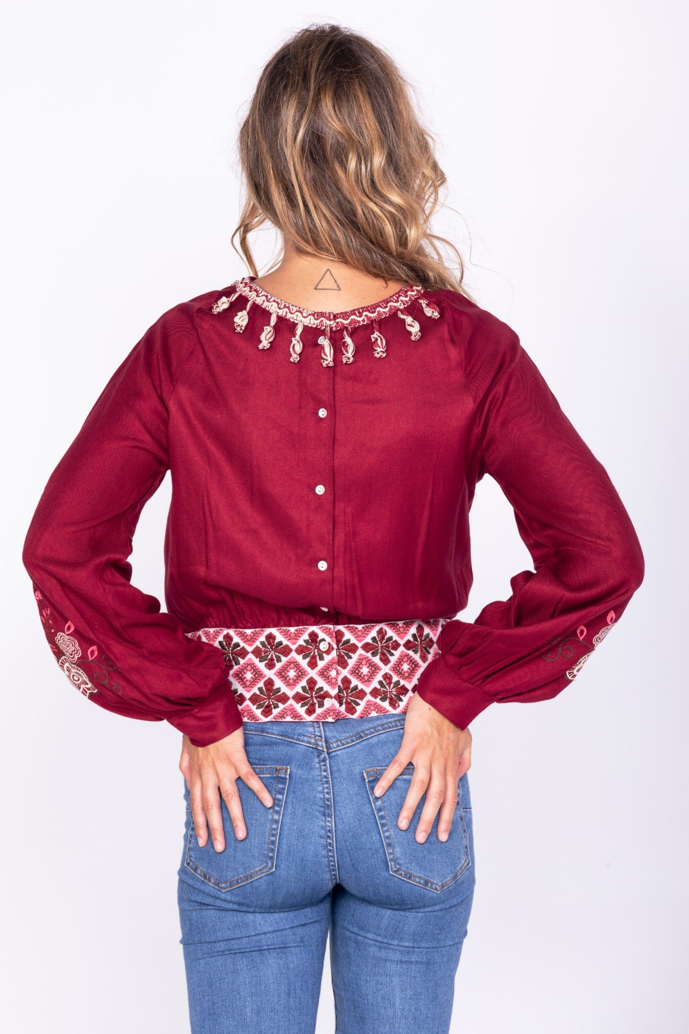 Điểm nhấn thêu hoa, họa tiết nổi bật.