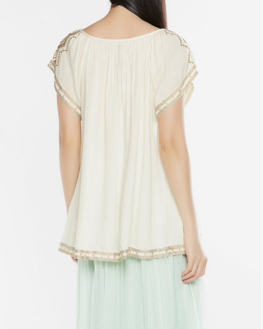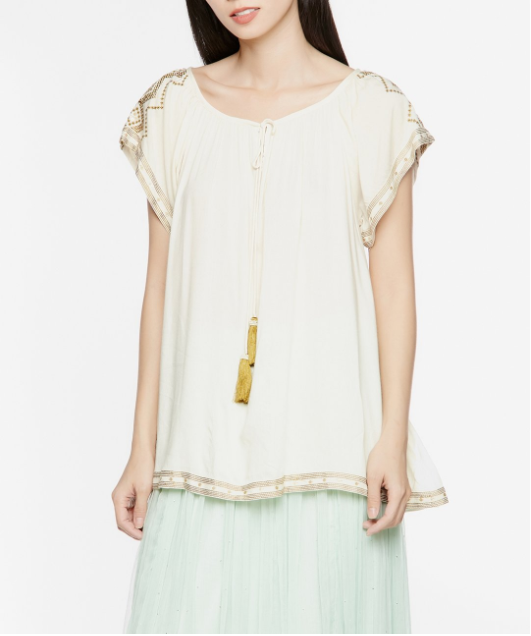 Thêu viền vai kết hợp phối tua rua thời trang.