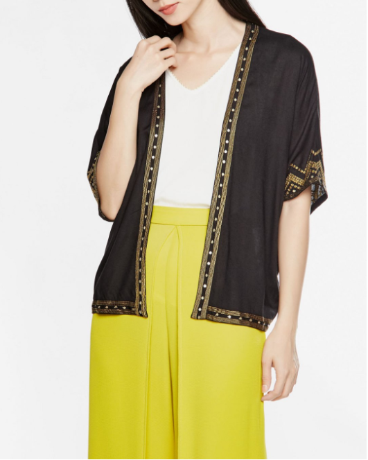 Áo Khoác Đen Chần Chỉ Vàng tinh tế, nữ tính.