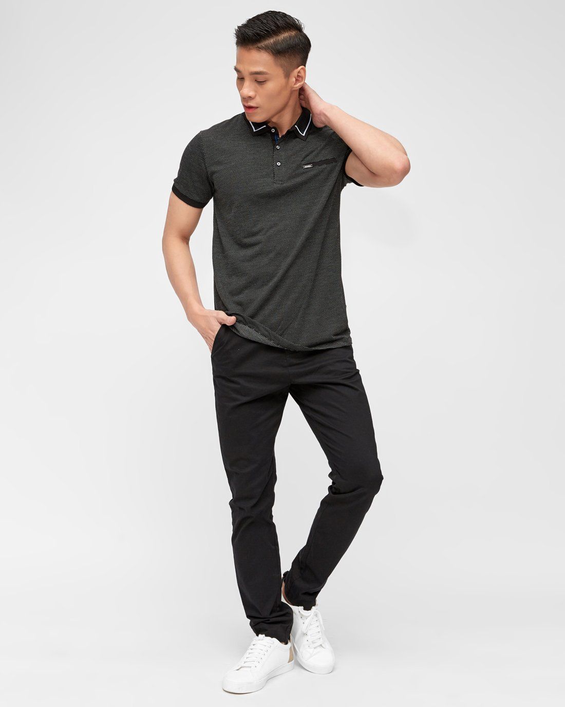 Áo polo nam tay ngắn, cổ bẻ phối nút cài.