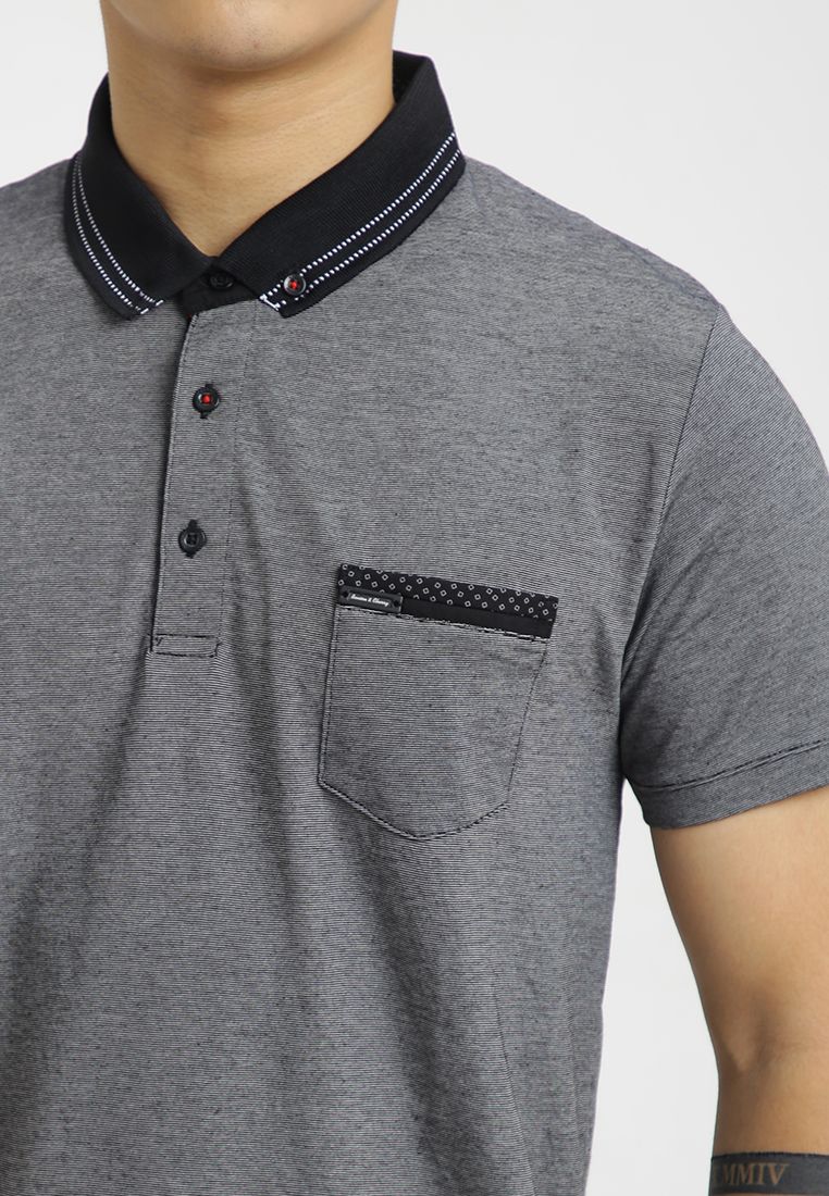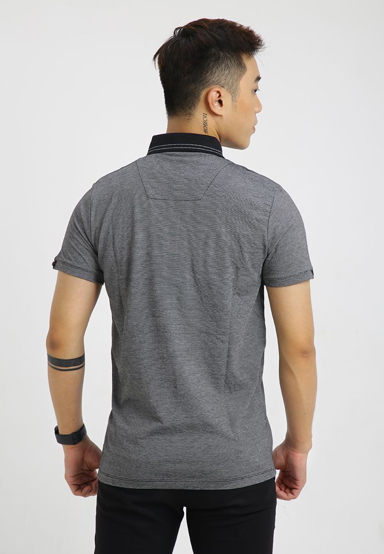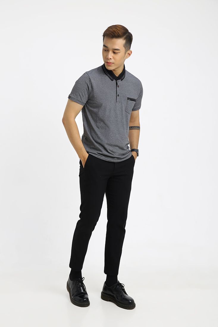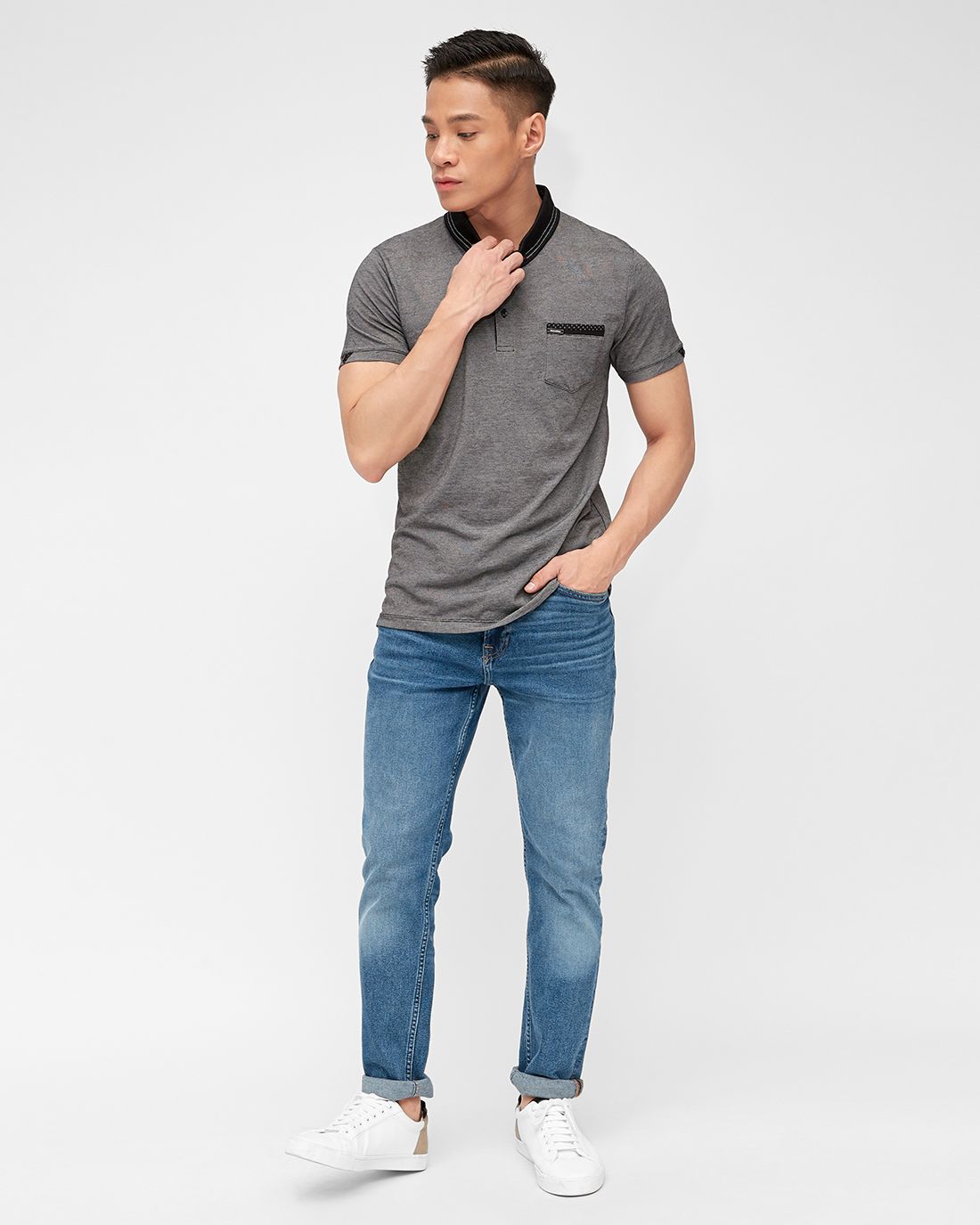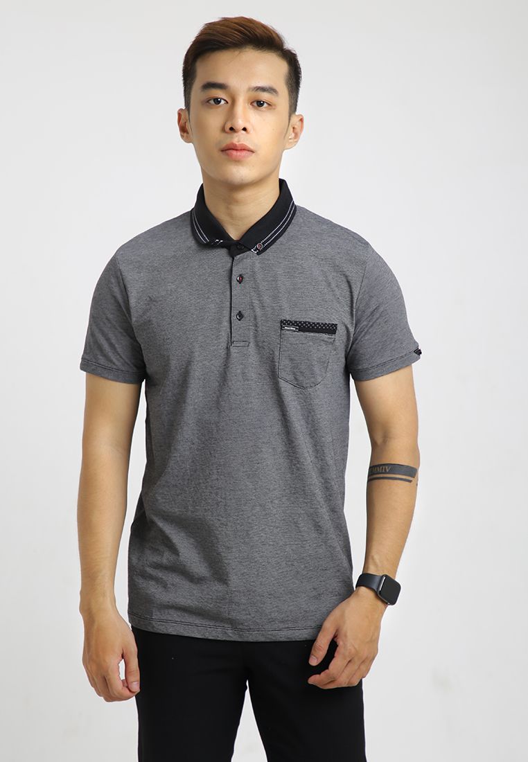 Áo polo nam tay ngắn, cổ bẻ phối nút cài và túi ngực.