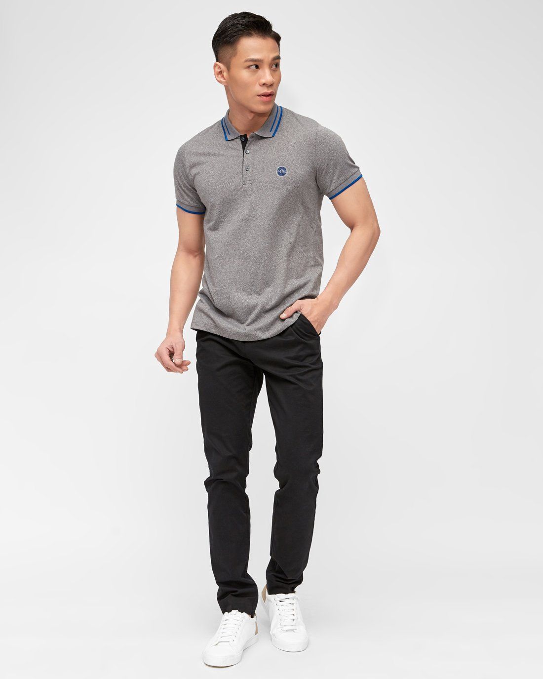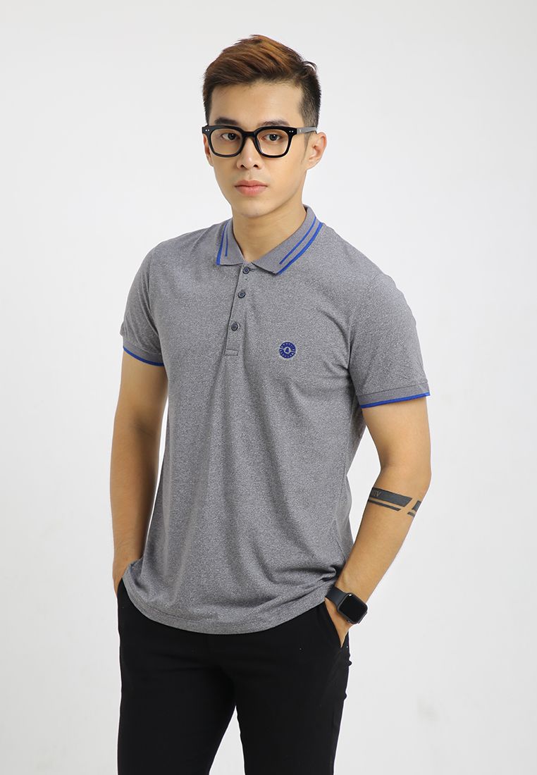 Áo polo nam tay ngắn, cổ bẻ phối viền và nút cài.