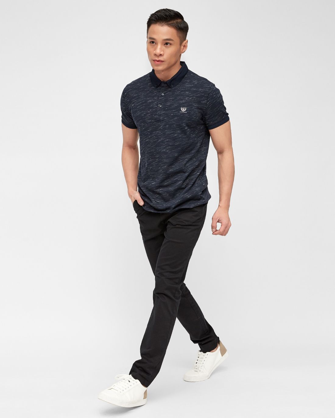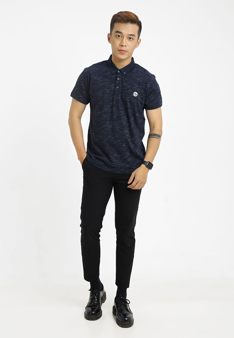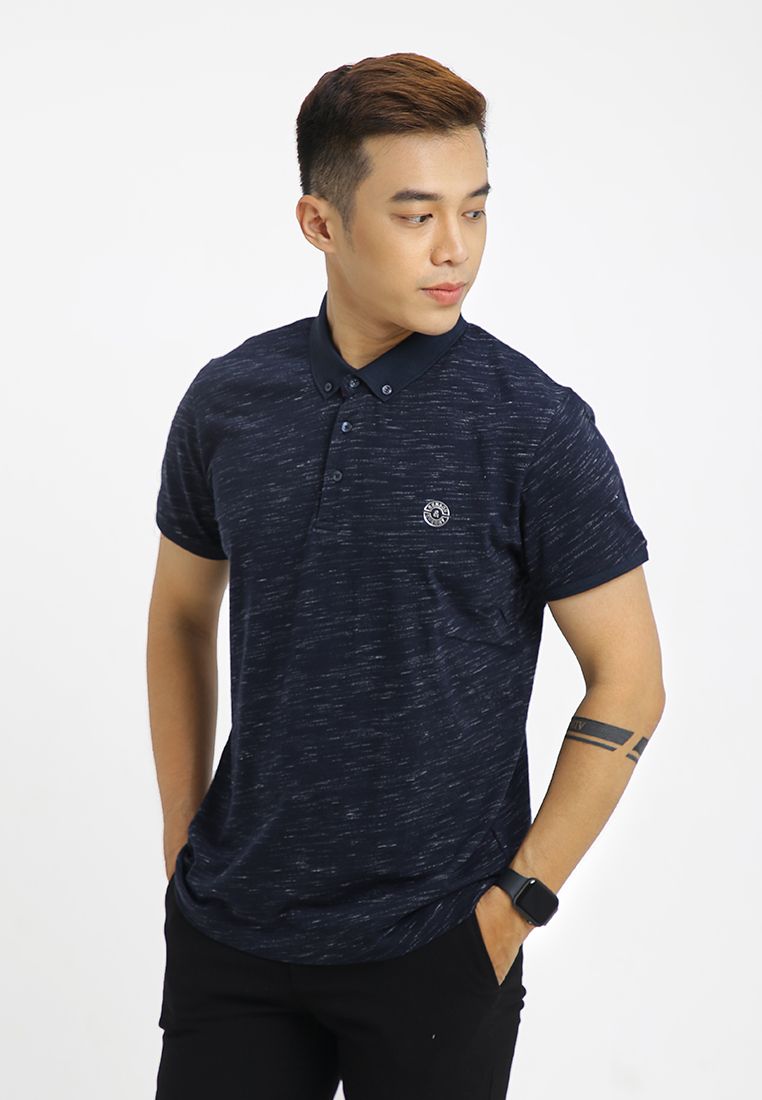 Áo polo nam cổ bẻ, tay ngắn họa tiết phối nút cài và logo ngực.