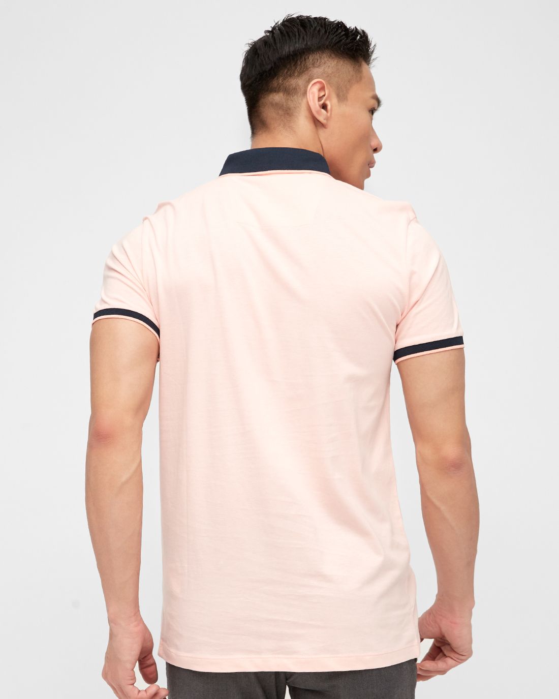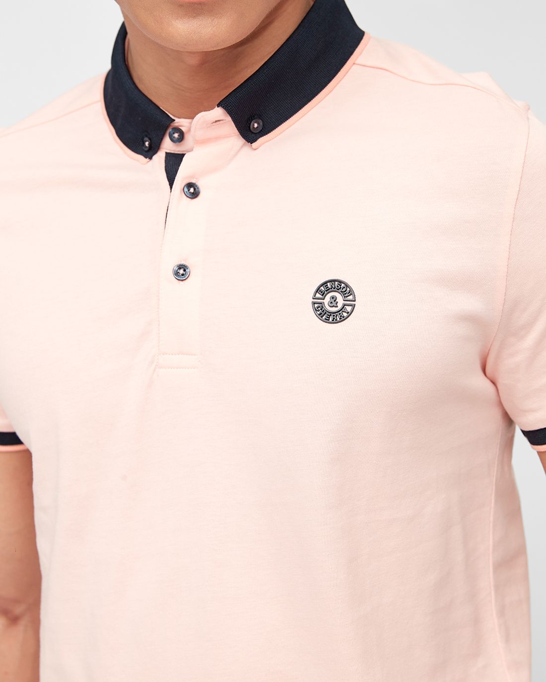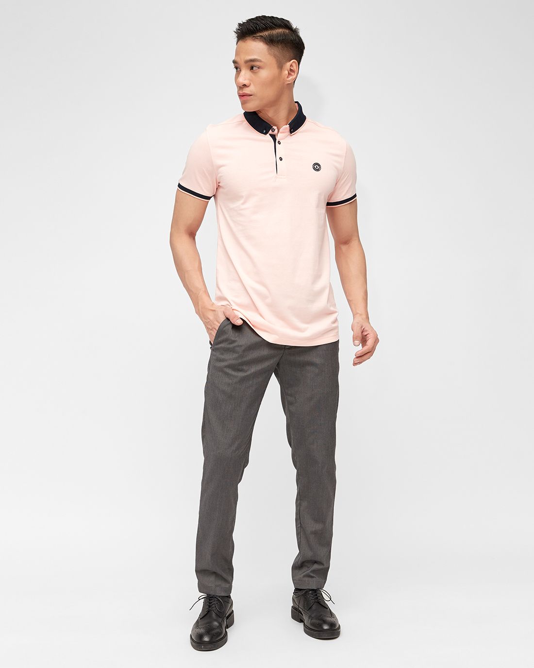 Áo polo nam tay ngắn, cổ bẻ phối nút cài và logo ngực.