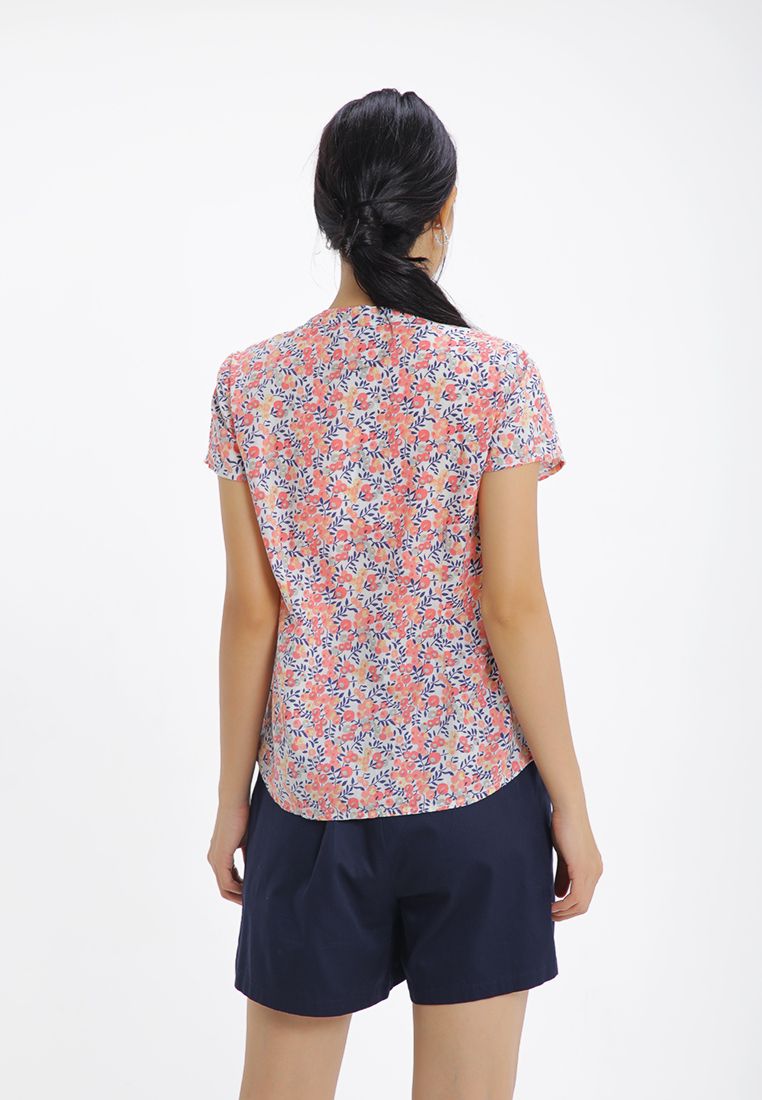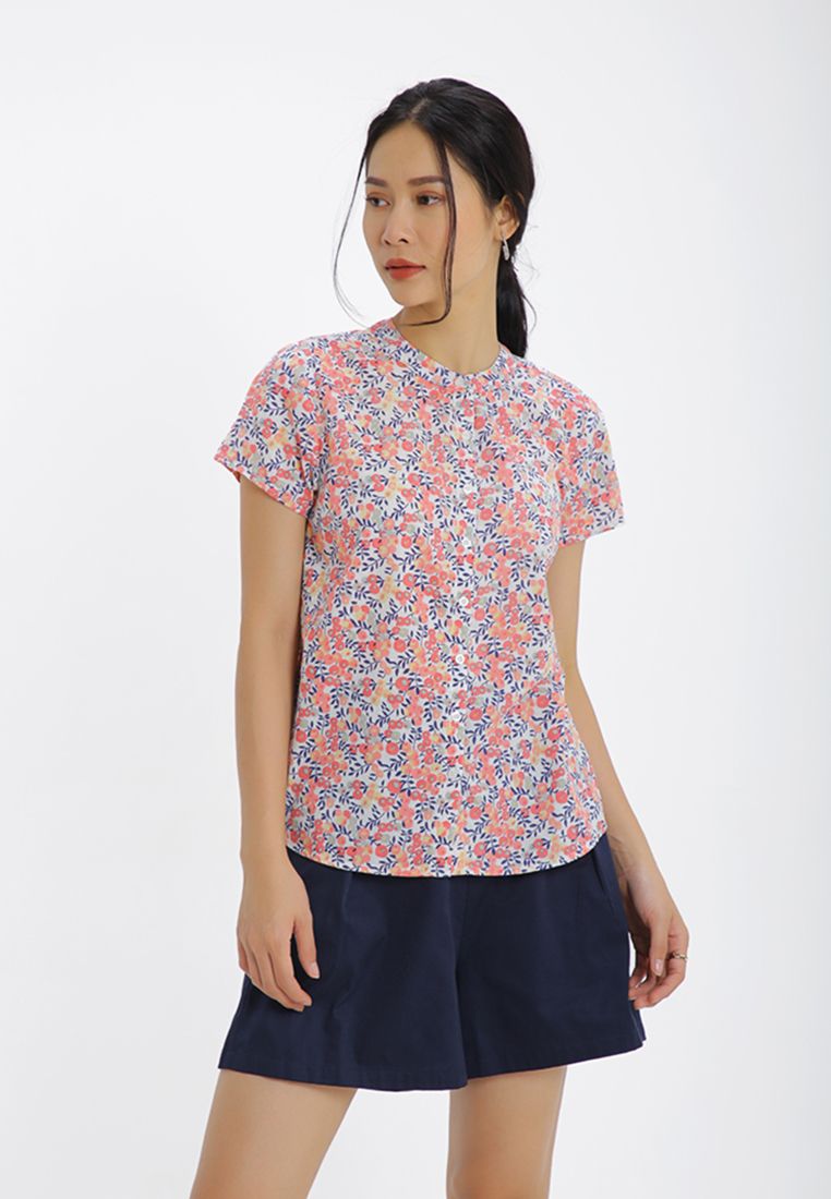 Áo sơ mi phối hoa, kiểu dáng đơn giản, màu sắc trang nhã, thời trang.