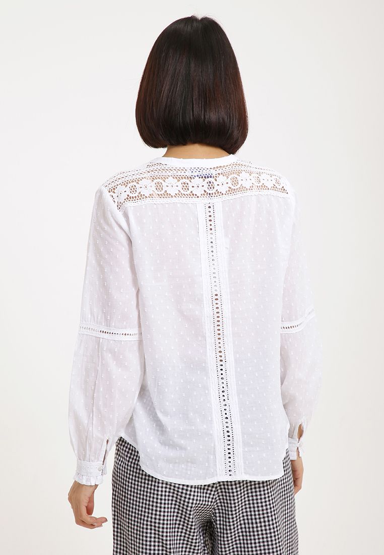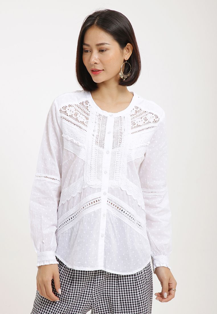 Áo sơ mi phối ren, kiểu dáng đơn giản, màu sắc trang nhã, thời trang