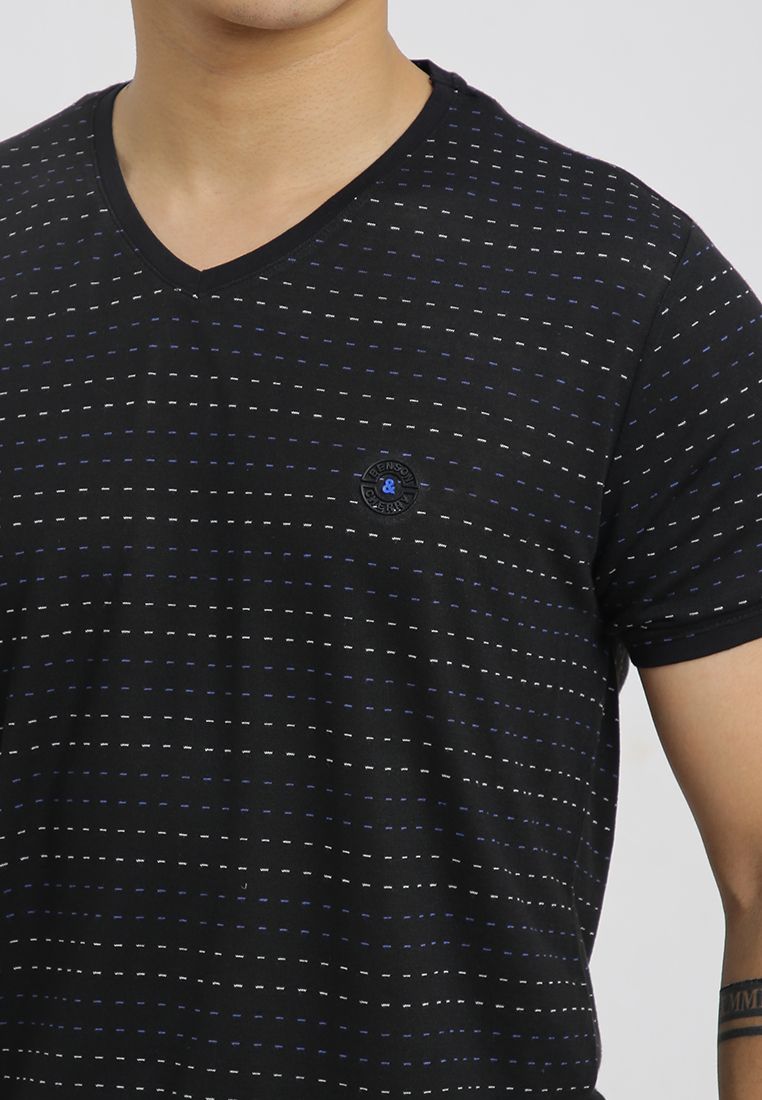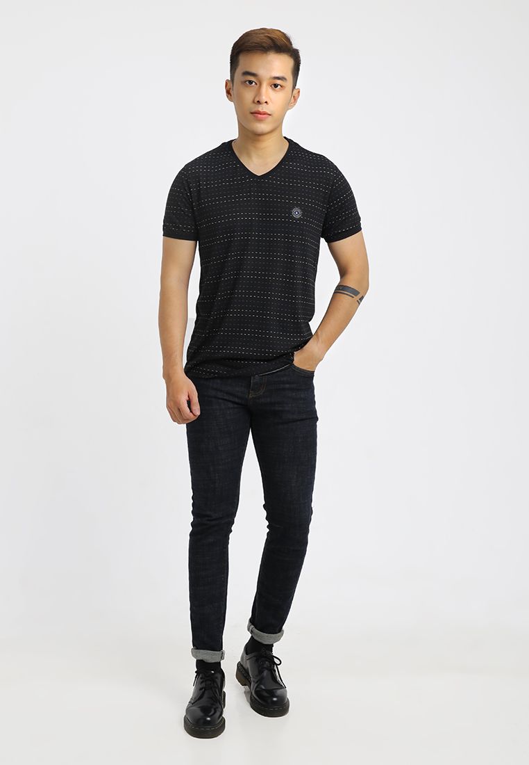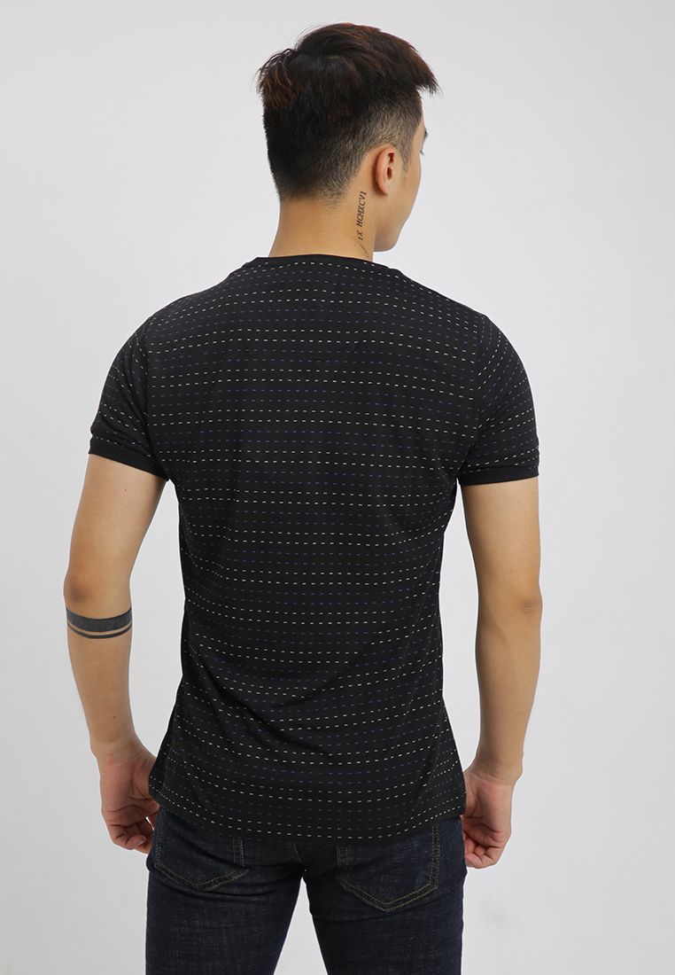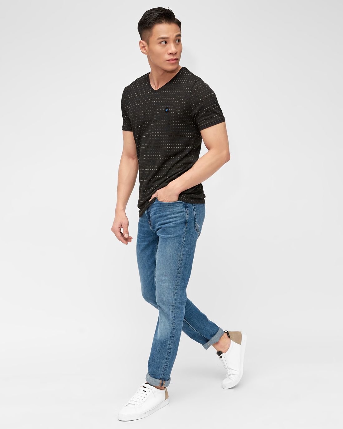 Áo thun nam tay ngắn, cổ tim, in họa tiết.