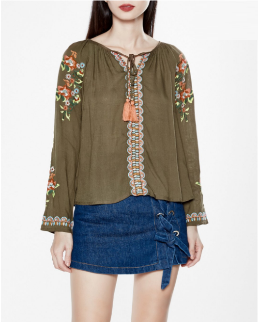 Áo Tay Dài Ivy thêu hoa tinh tế, nữ tính.
