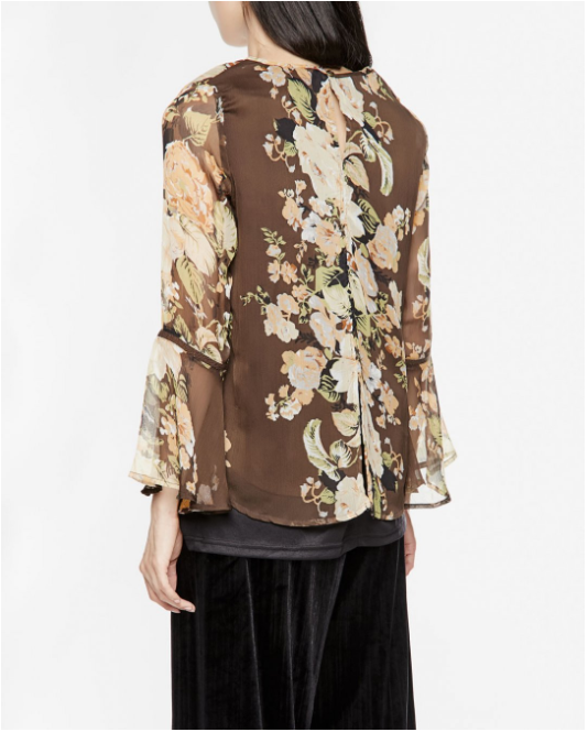 Họa tiết hoa nữ tính, tay loe thời trang.