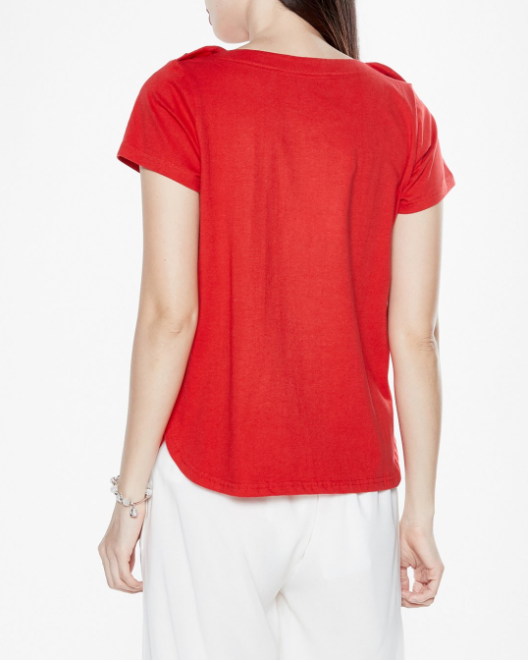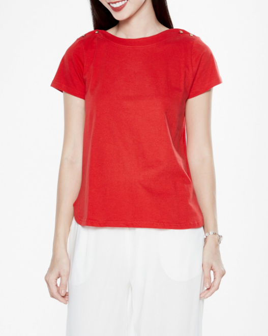 Áo thun basic đính nút kim loại kiểu dáng đơn giản, dễ phối hợp trang phục.