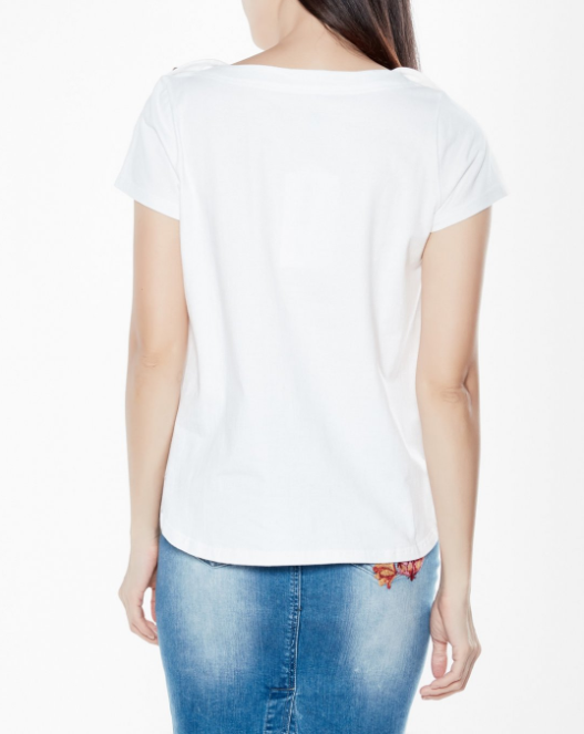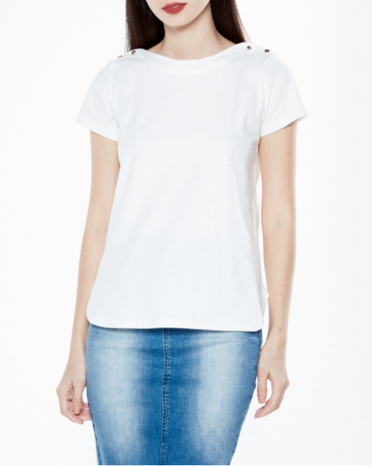 Áo thun basic đính nút kim loại kiểu dáng đơn giản, dễ phối hợp trang phục.