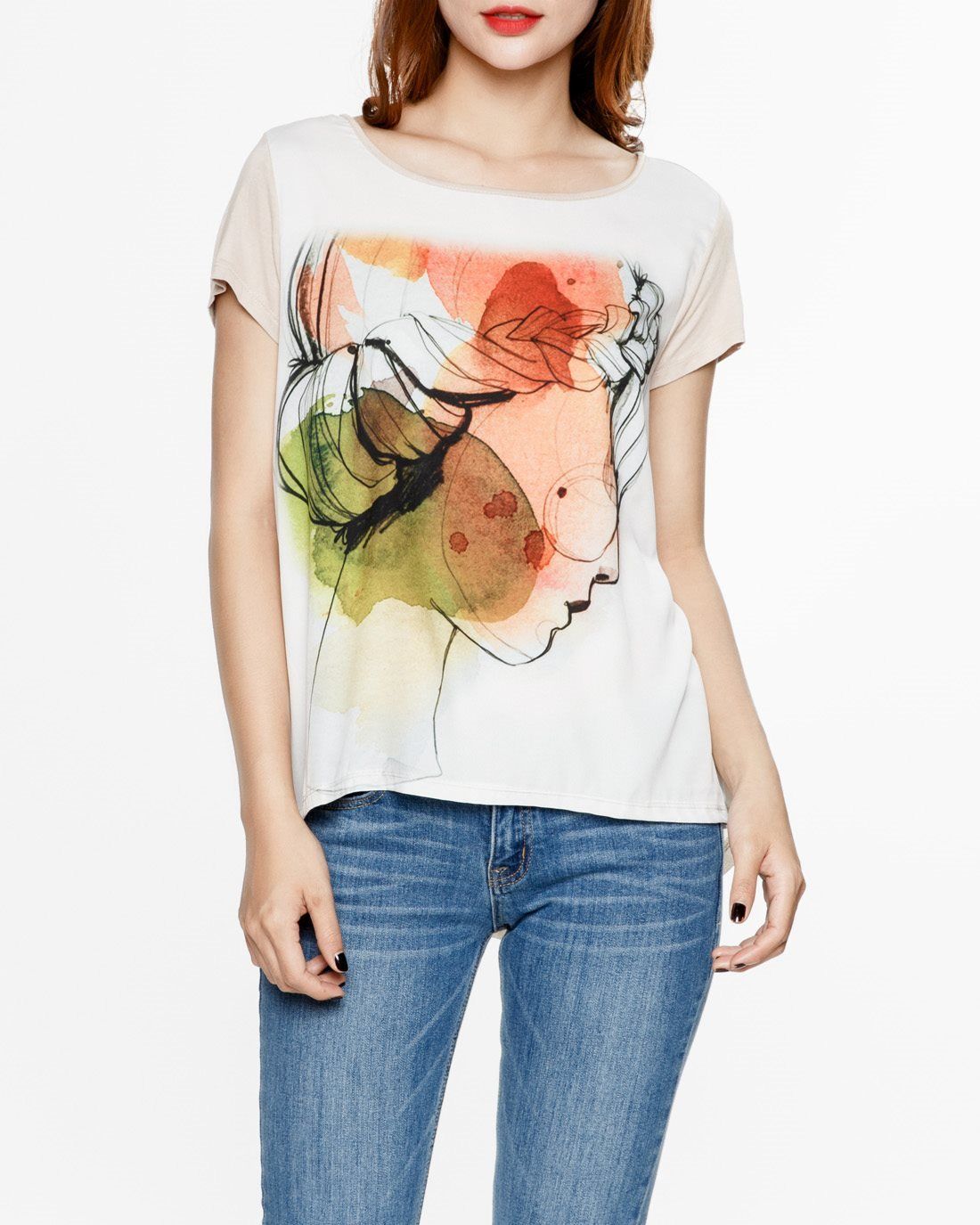 Áo thun tay ngắn họa tiết cô gái kiểu dáng đơn giản, dễ phối hợp trang phục.
