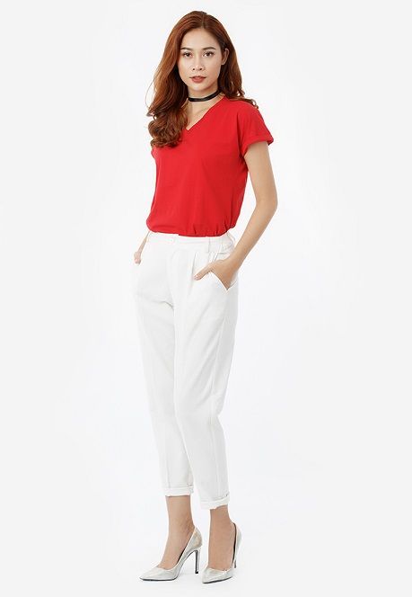 Áo thun trơn màu kiểu dáng đơn giản, dễ phối hợp trang phục.