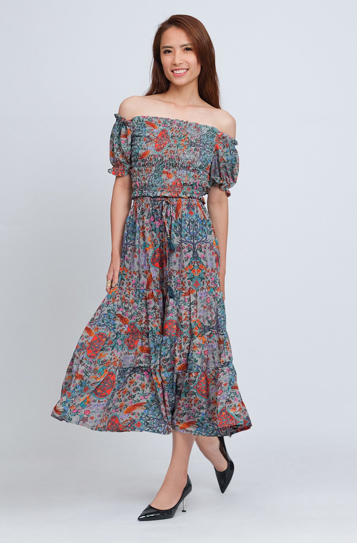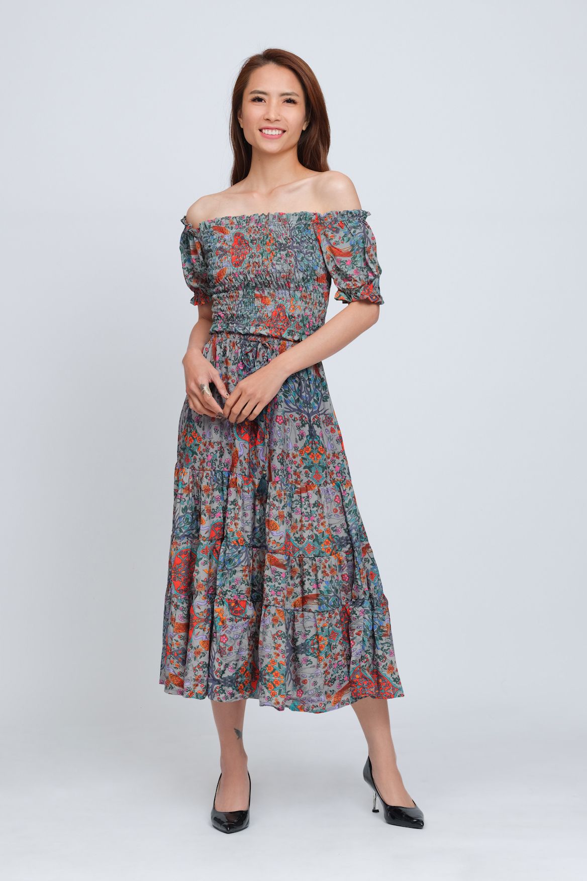 Maxi Hoa Trễ Vai Cotton Cao Cấp Luna Llena  Maxi Hoa Trễ Vai Cotton Cao Cấp Luna Llena