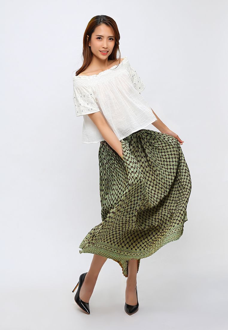 Chân Váy Maxi Xếp Li Xanh Luna Llena