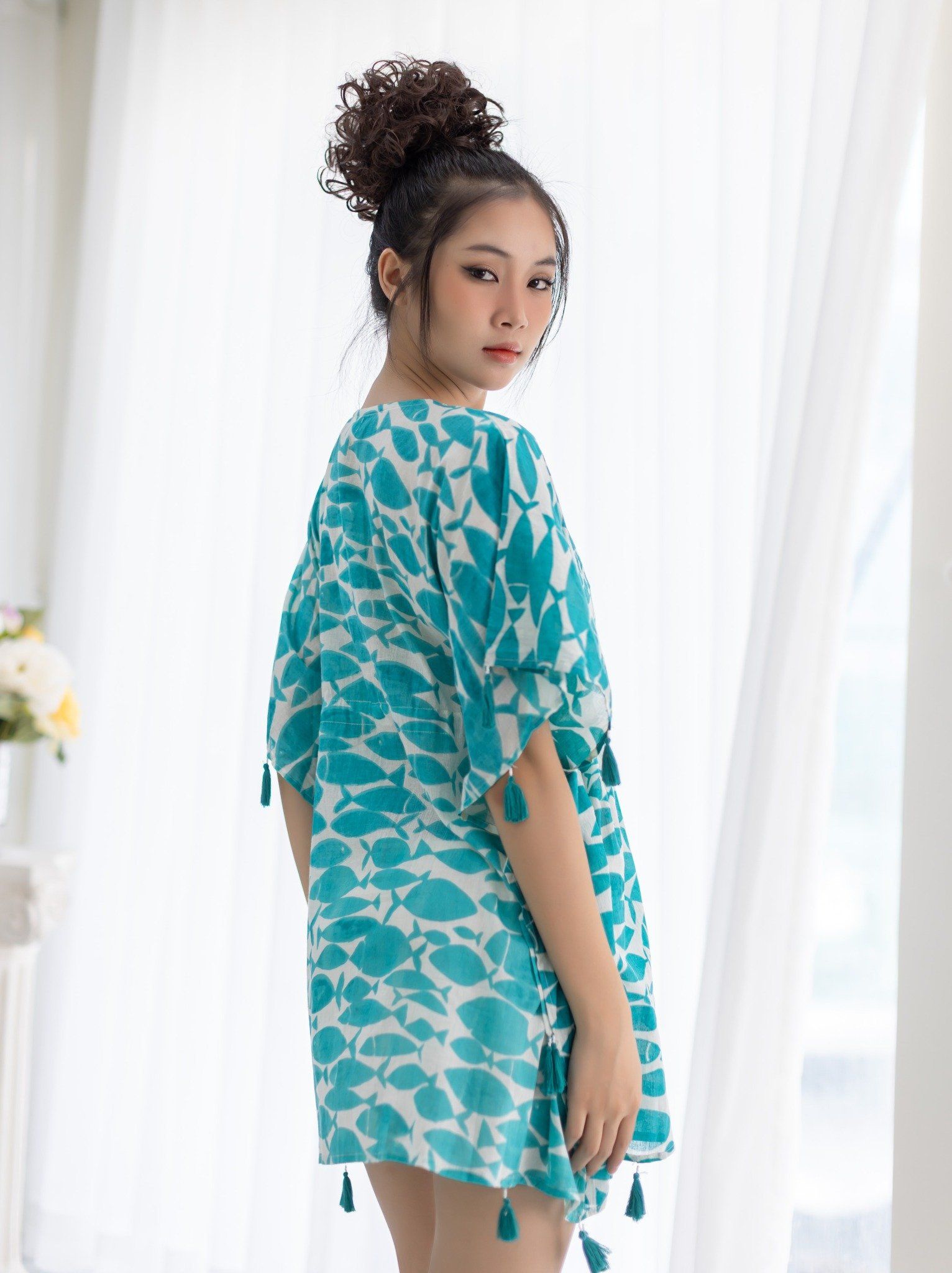 Đầm Kimono Cánh Dơi Kết Cườm Cotton Isla Bonita