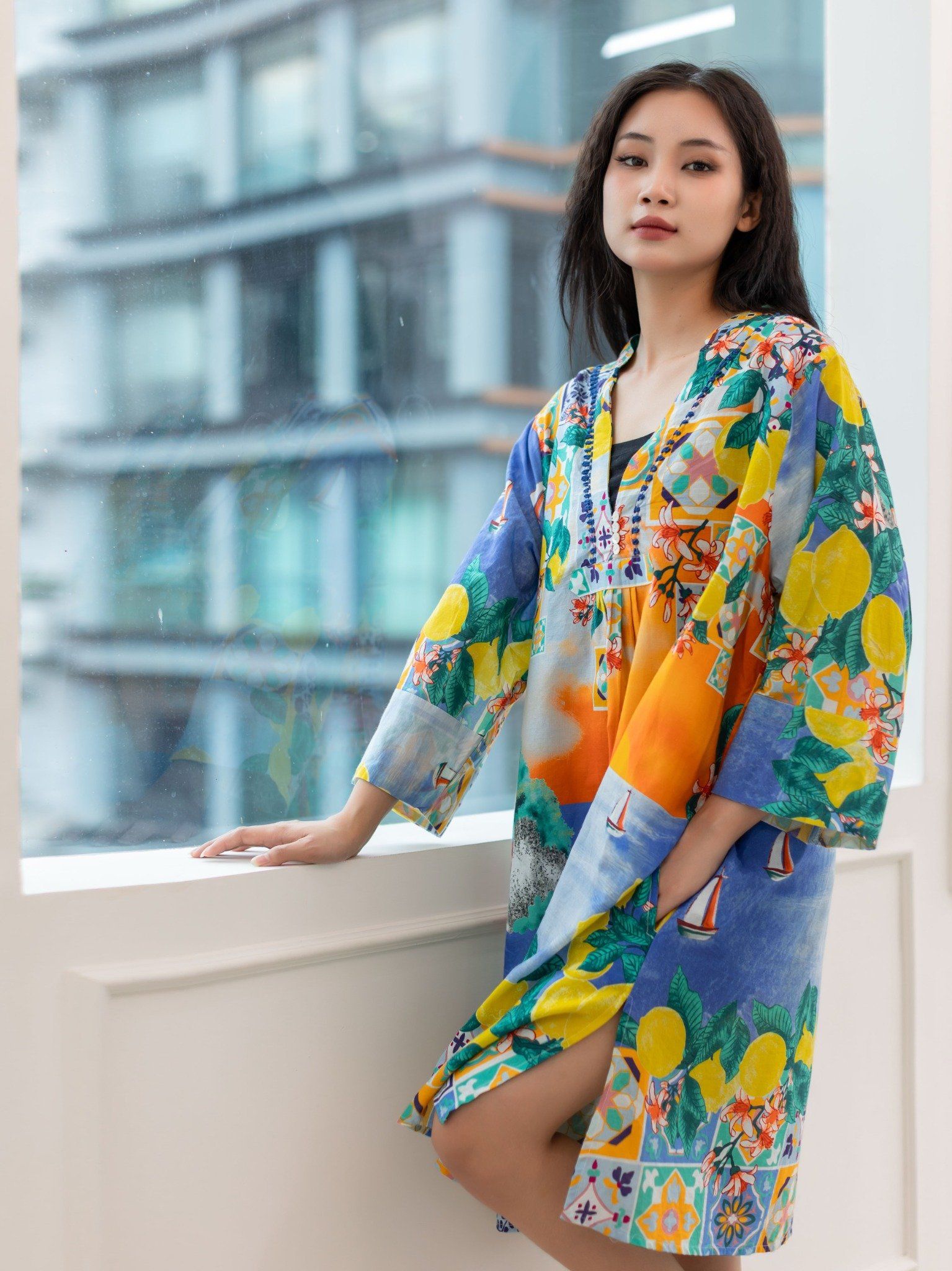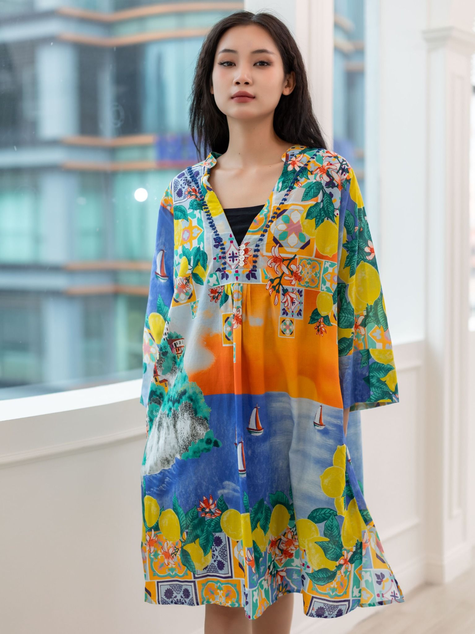 Maxi Sơ Mi Xanh Cotton Isla Bonita