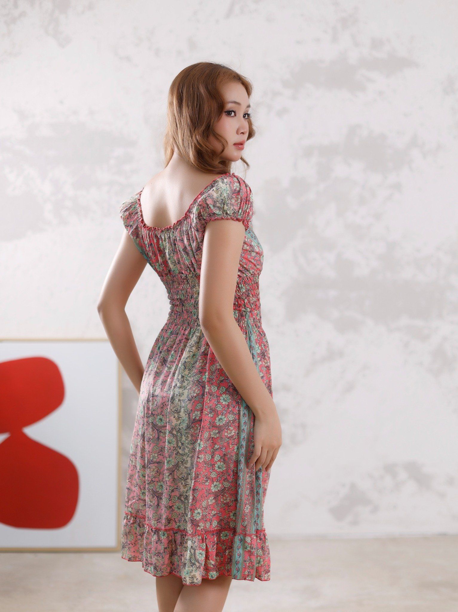 Đầm chất lụa pha mềm mại, thân trên co giãn nhiều và tạo độ ôm sát vào người , tôn dáng thon gọn. Dài đầm 95cm ( 45x95cm)