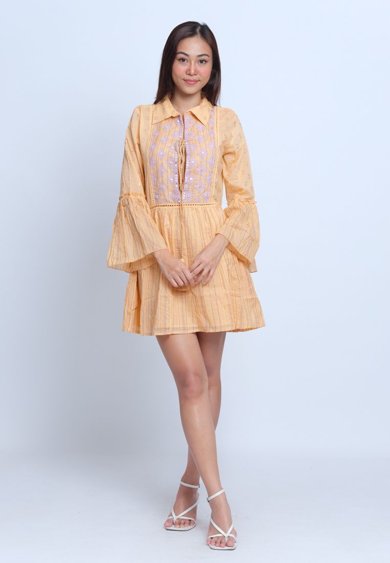 Ánh kim rất nhẹ toàn thân, thêu nổi trước ngực.