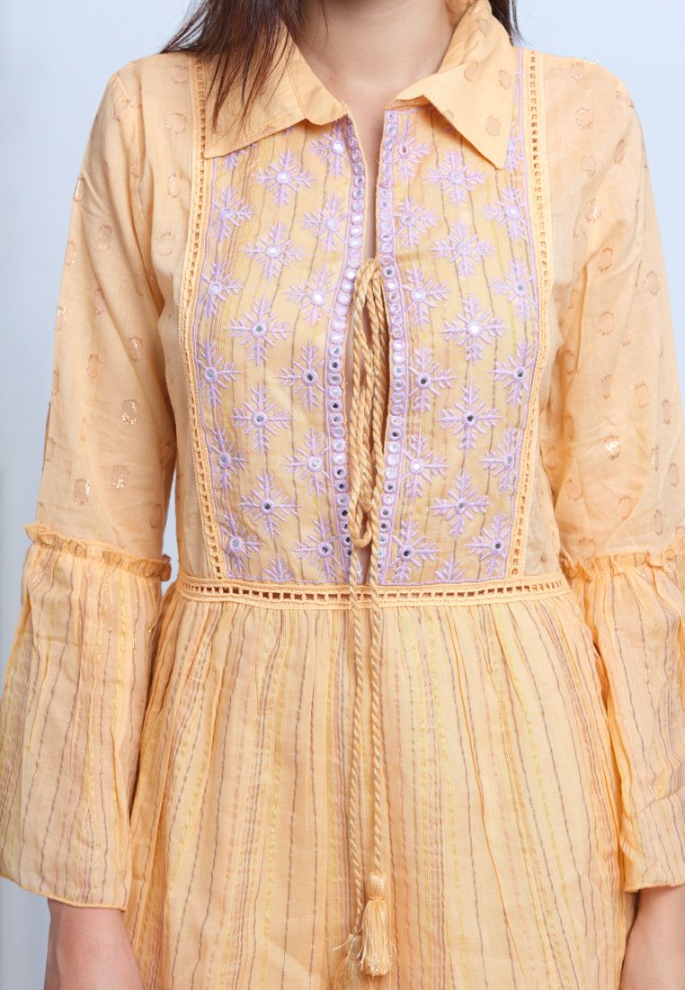 Phần thân trước không có nút, có dây cột ở cổ áo.