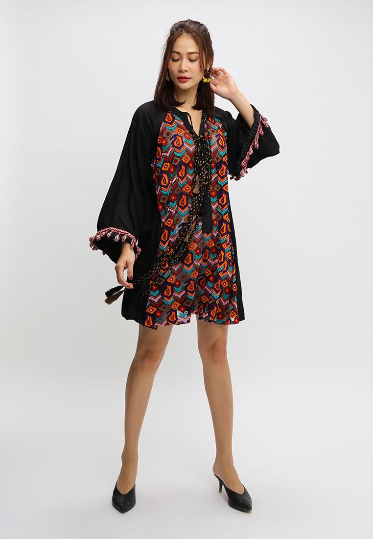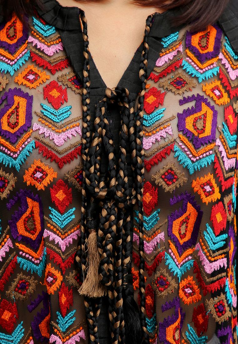 Phần thân trước phối ren lưới, kết hợp thêu nổi, hoạ tiết nổi bật