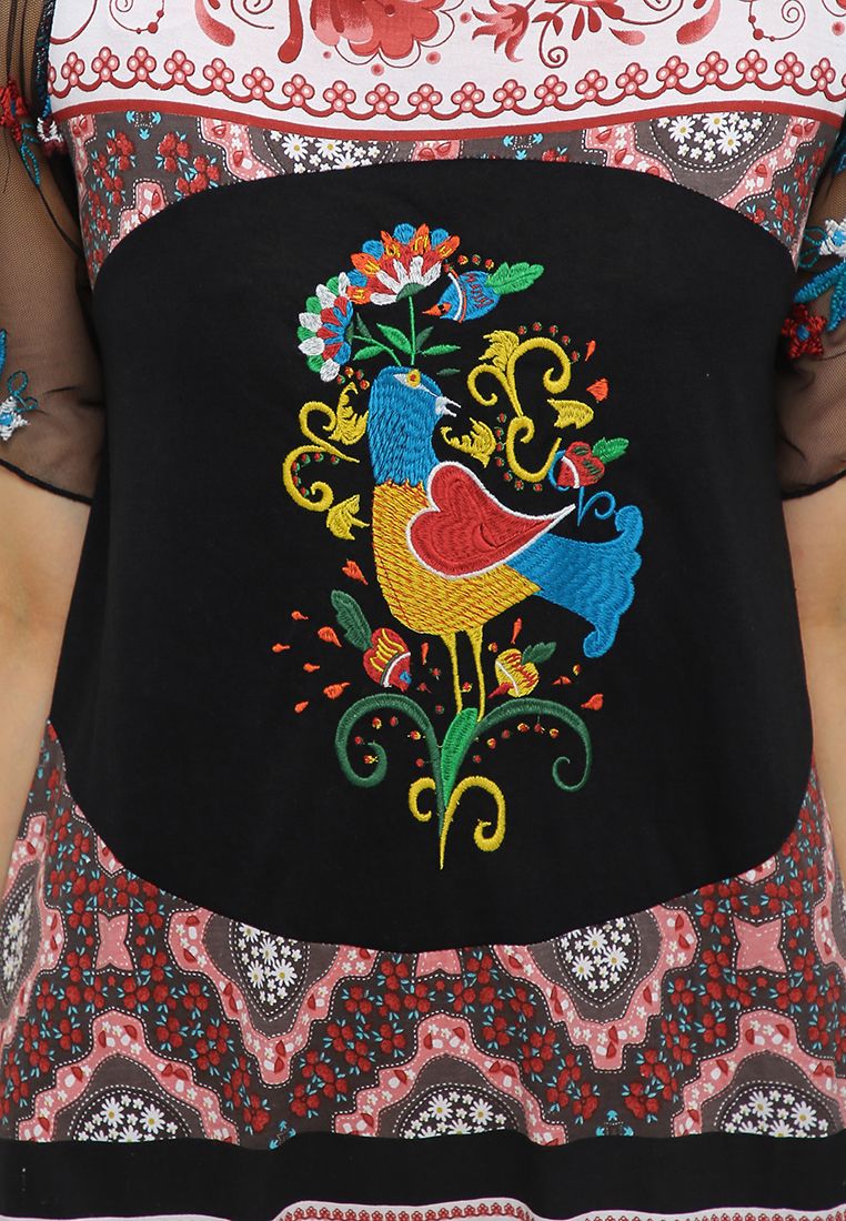 Thân trước thêu nổi, họa tiết ấn tượng.