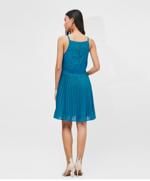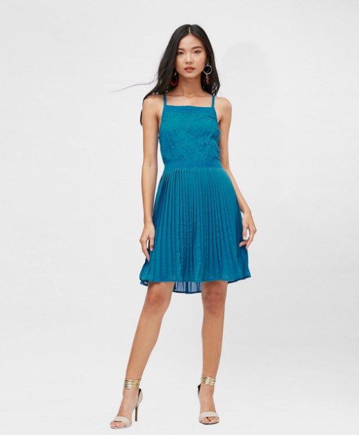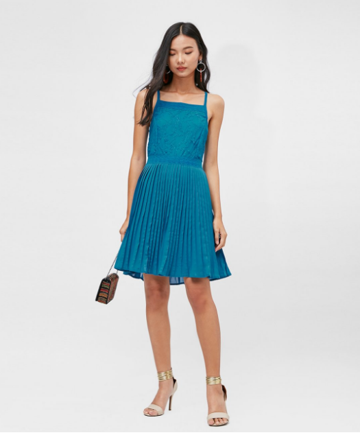 Đầm hai dây kết hợp ren hoa nổi tạo sự nữ tính, sang trọng.