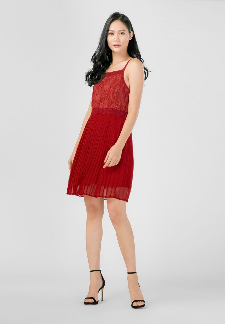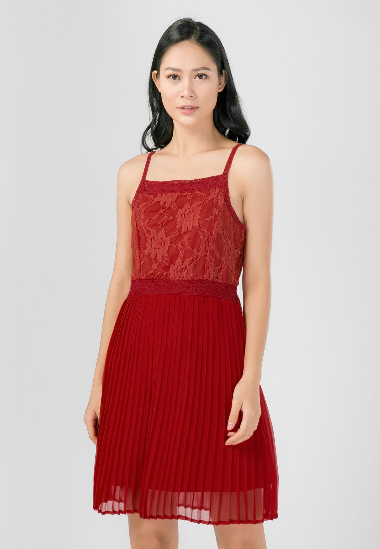 Đầm hai dây kết hợp ren hoa nổi tạo sự nữ tính, sang trọng.