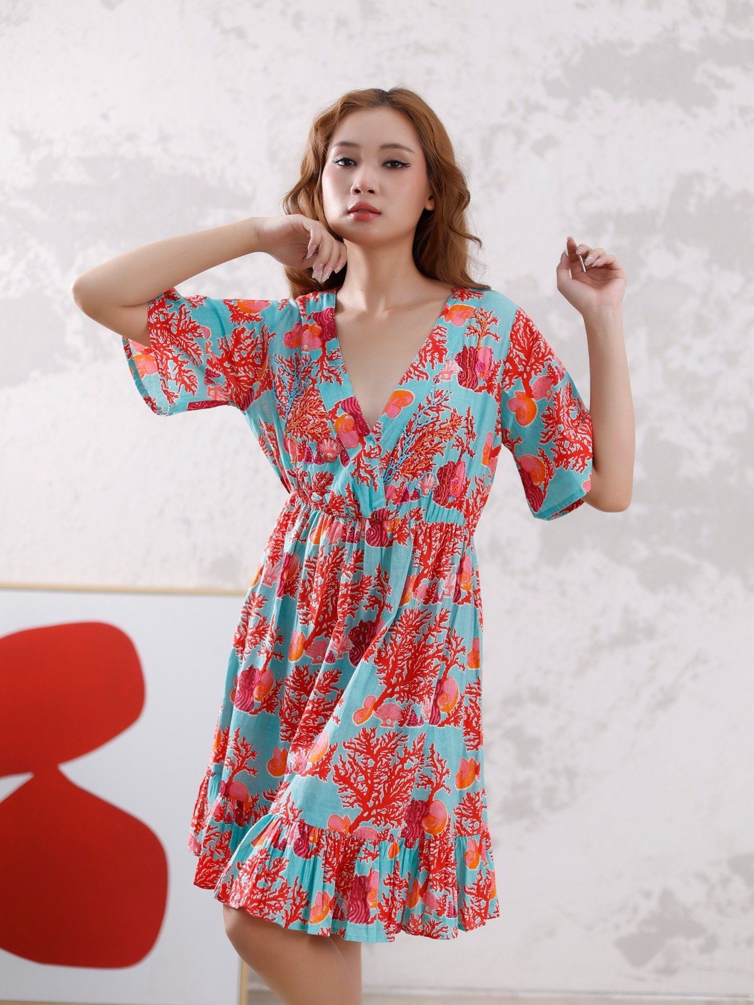 Đầm Hoa Kết Cườm Cotton Isla Bonita