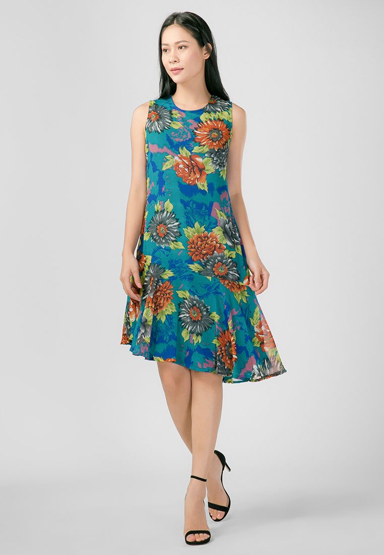 Đầm không tay vạt bèo chéo họa tiết hoa thanh lịch và nữ tính