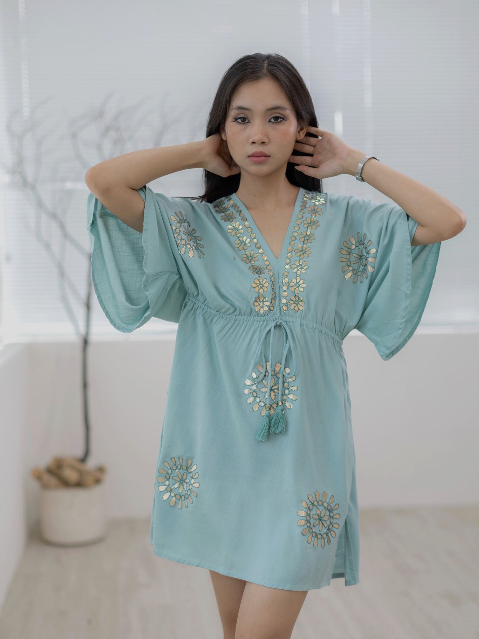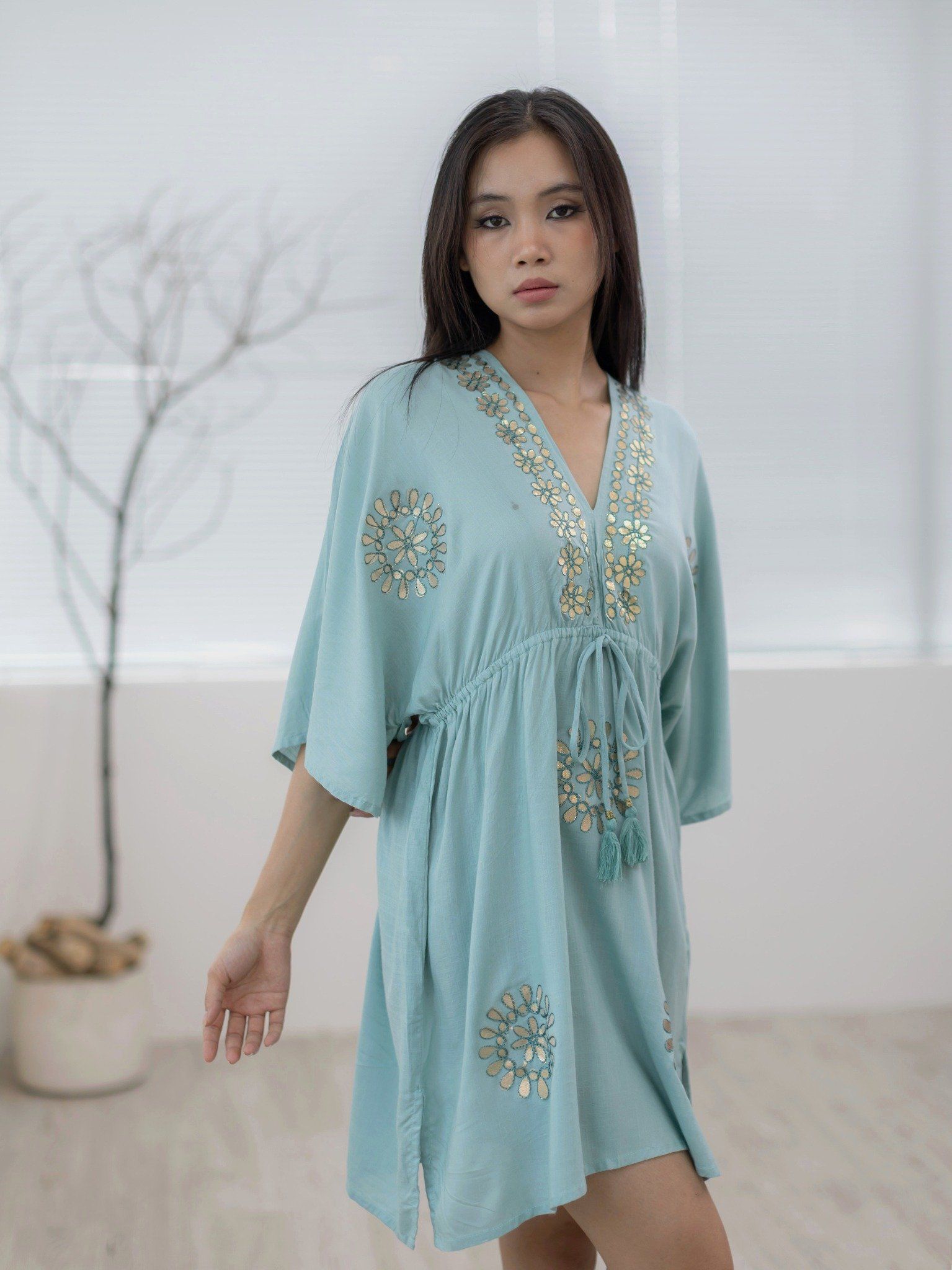 Đầm Kimono Kết Hoa Ánh Kim Cao Cấp Cotton Isla Bonita