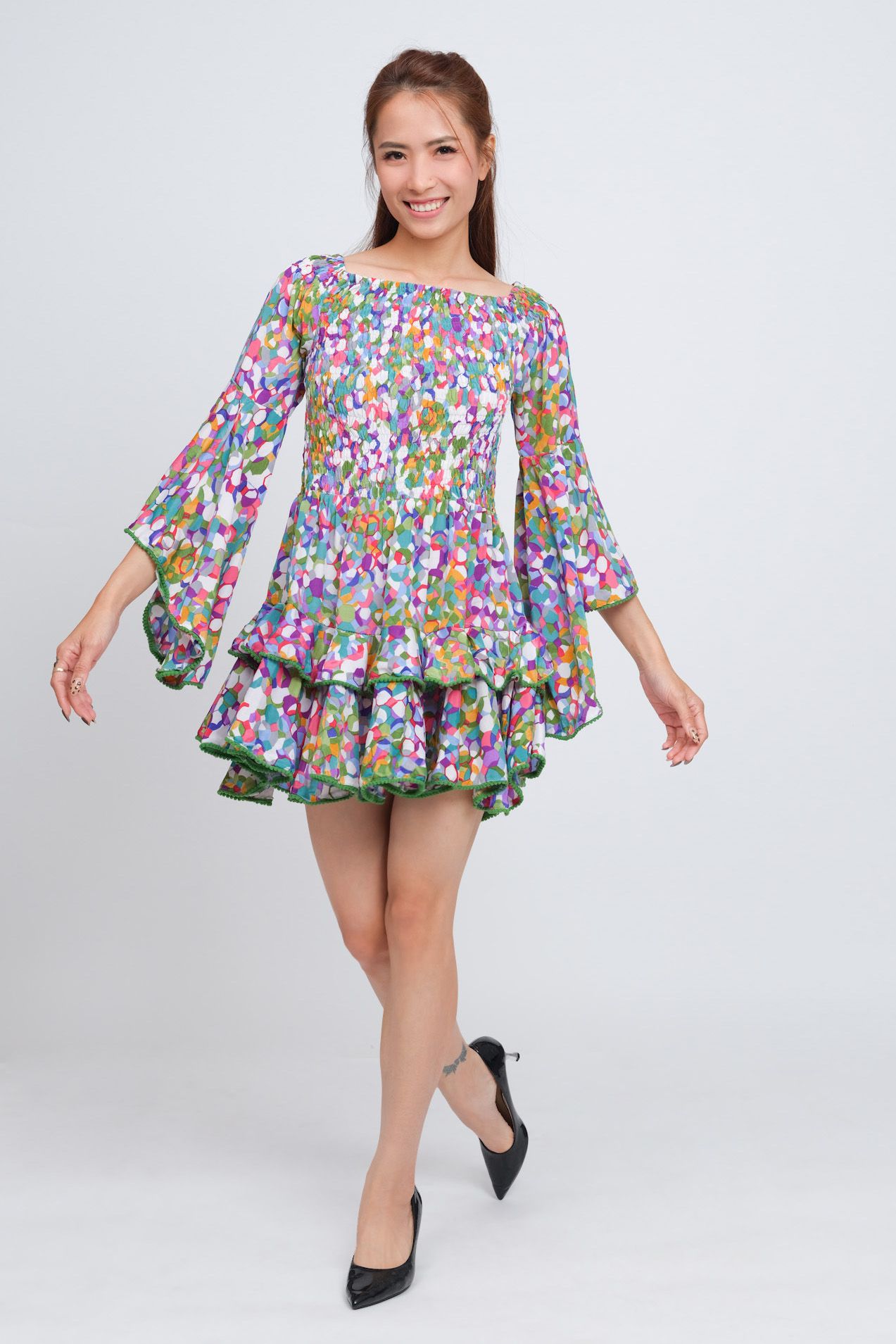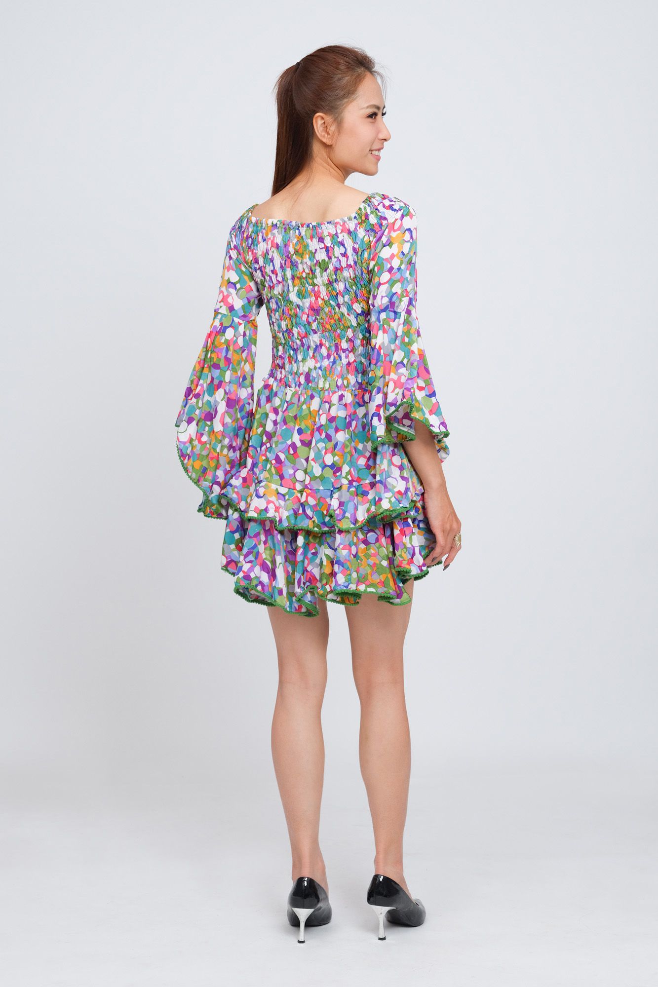 Có thể mặc 2 kiểu: trễ vai hoặc kín