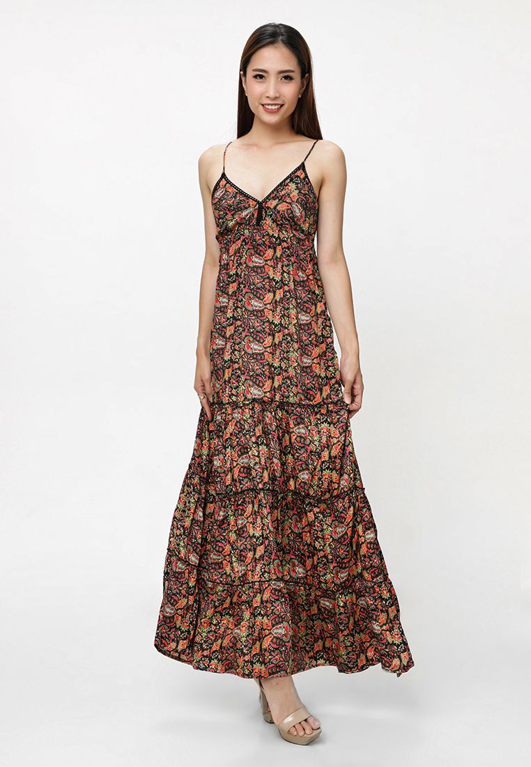 Đầm Maxi 2 Dây Lụa Họa Tiết Thổ Cẩm Luna Llena