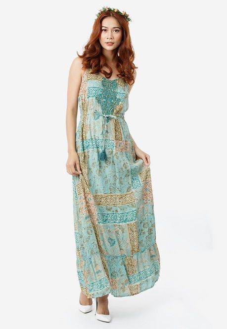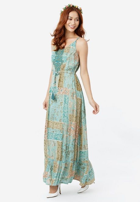 Đầm Maxi 2 Dây Phối Ren Thắt Nơ Eo phong cách đơn giản, phóng khoáng nhưng không kém phần nữ tính.
