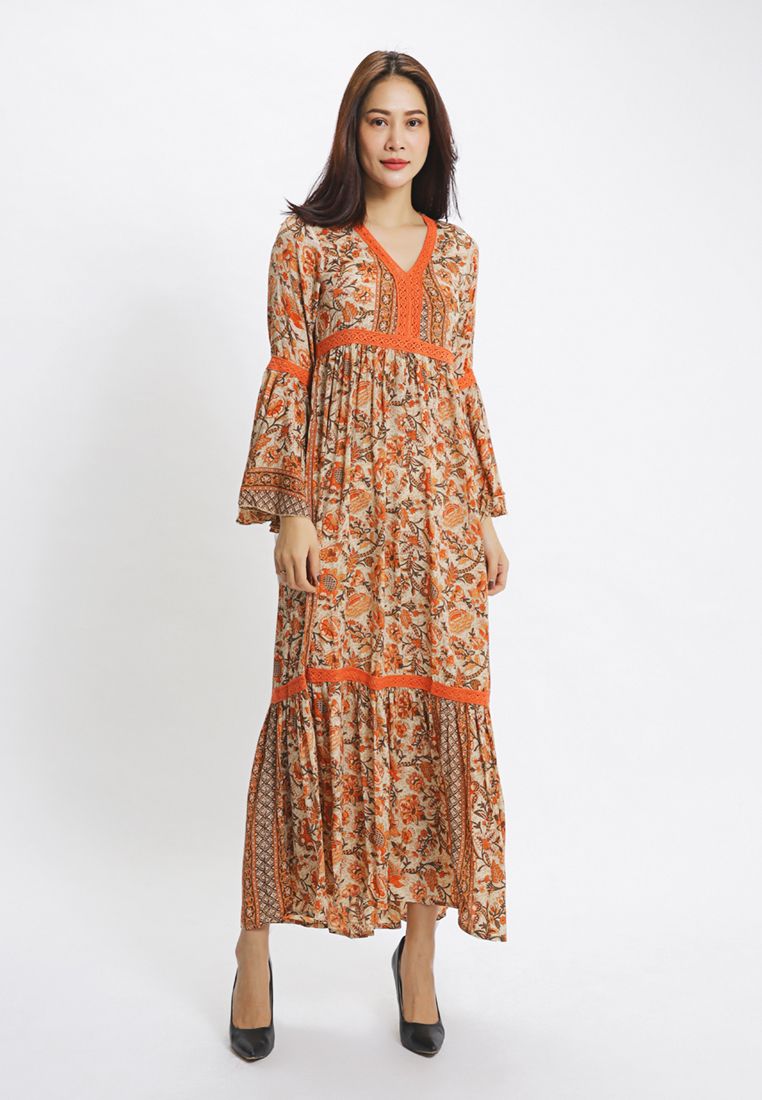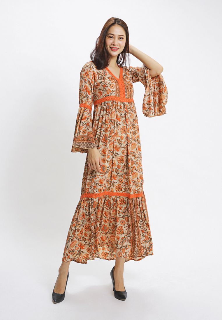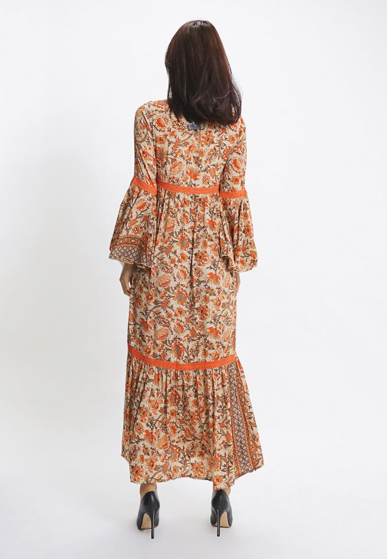Đầm Maxi Dài Tay Họa Tiết Thổ Cẩm Luna Llena