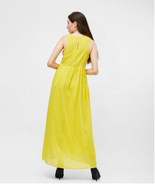 Đầm maxi họa tiết thêu viền sang trọng và nữ tính.