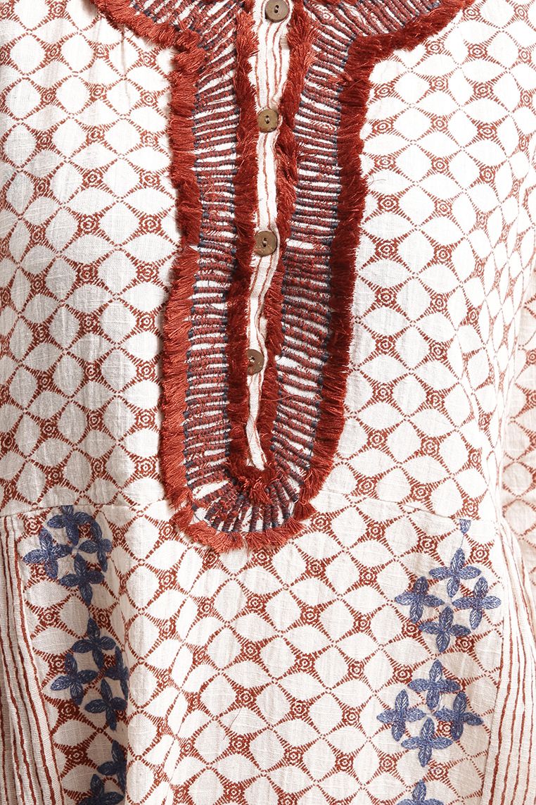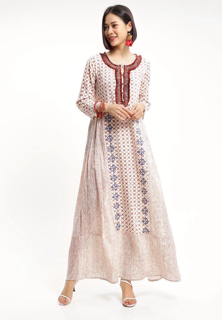 Điểm nhấn thêu trước ngực và thêu hoa trên thân váy