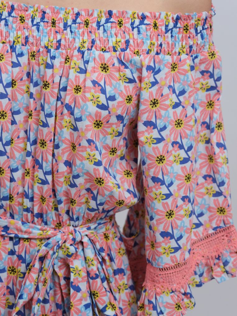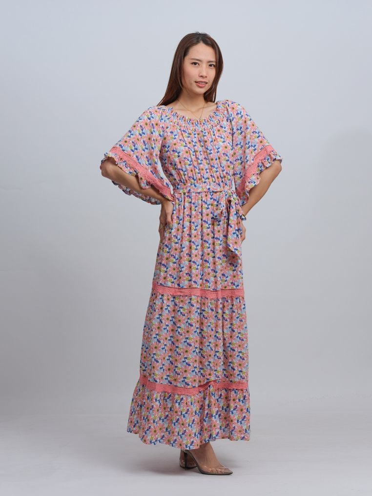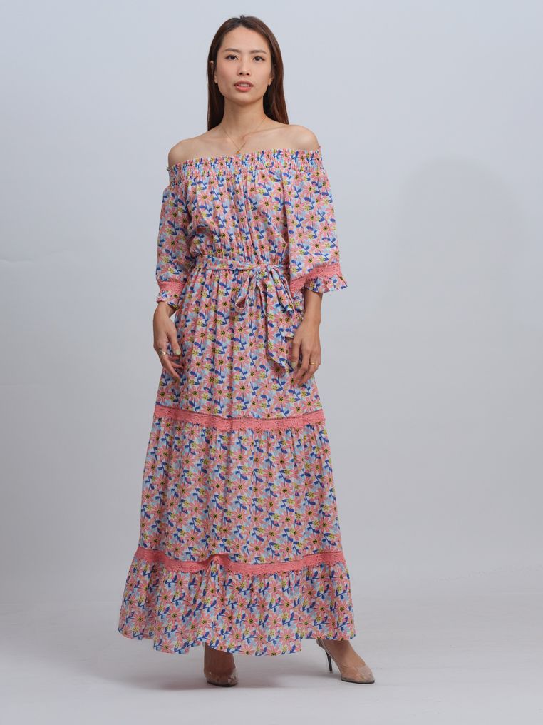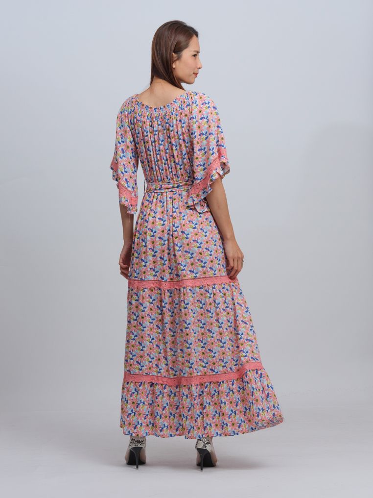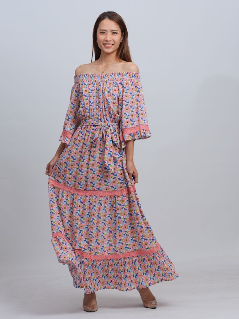 Phối ren trên thân đầm, có thể mặc 2 kiểu: trễ vai hoặc kín