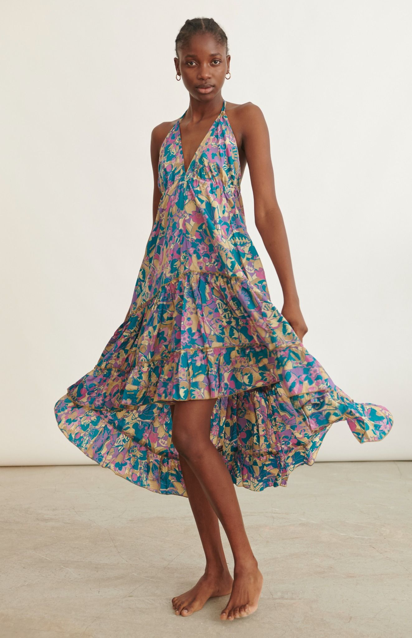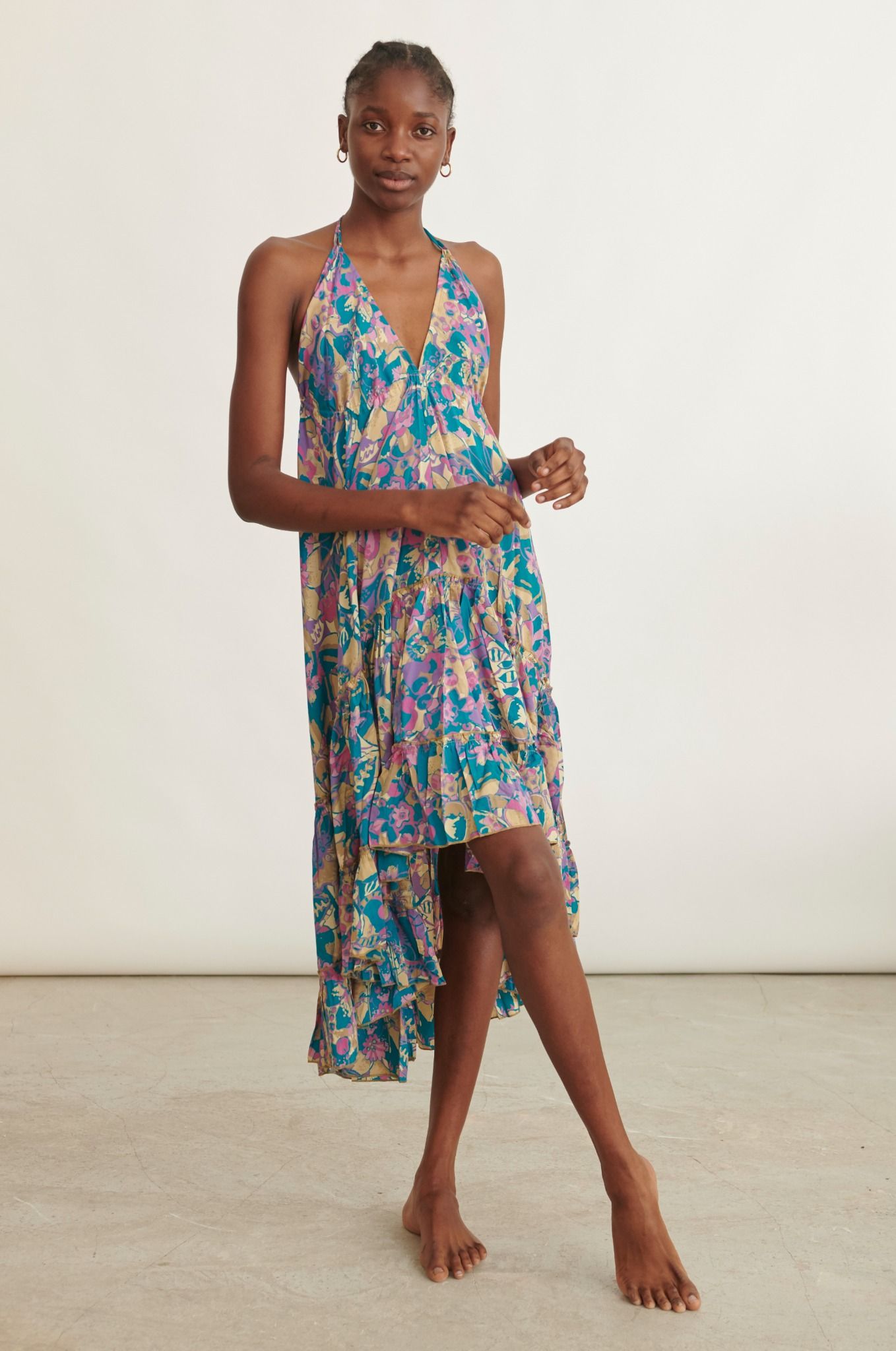Họa tiết lạ mắt, với thiết kế cổ yếm và phần khoét lưng sâu quyến rũ.