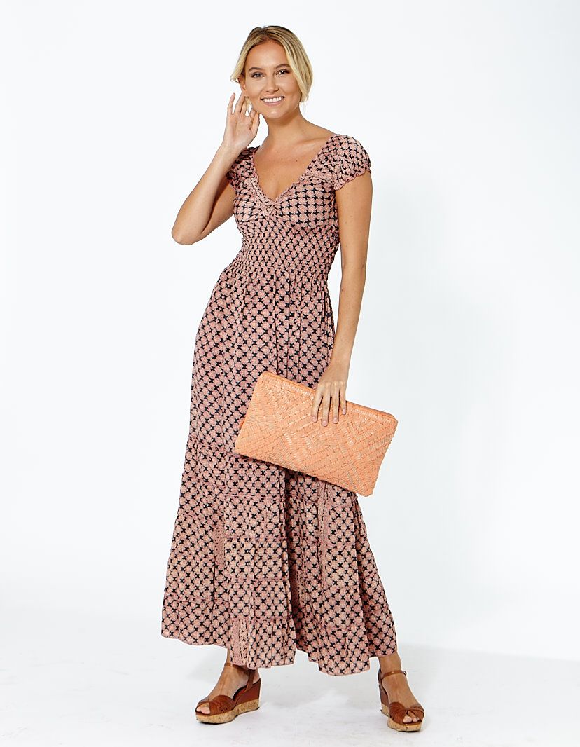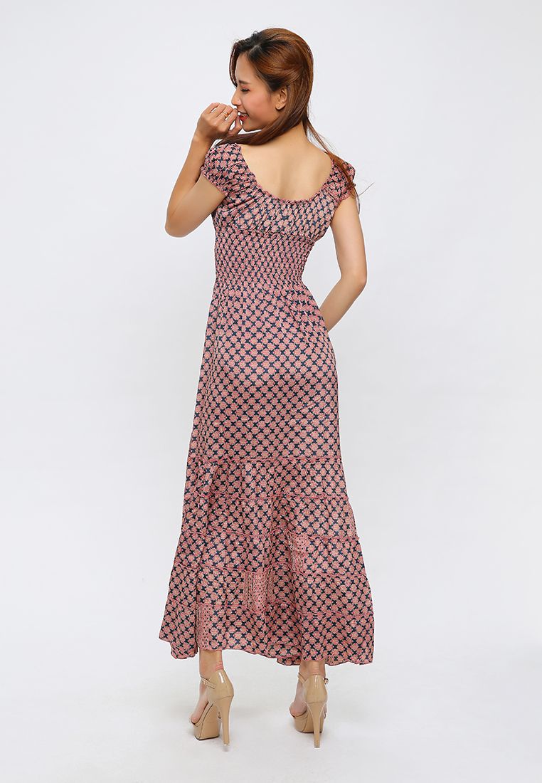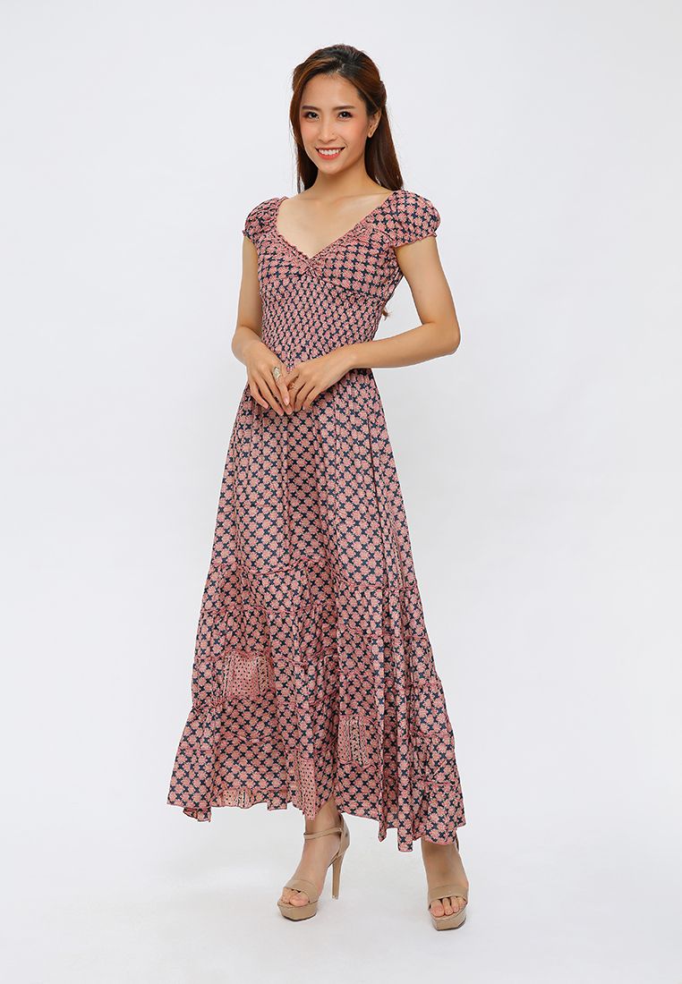 Đầm Maxi Lụa Tím Tay Nhúng Họa Tiết Caro Luna Llena