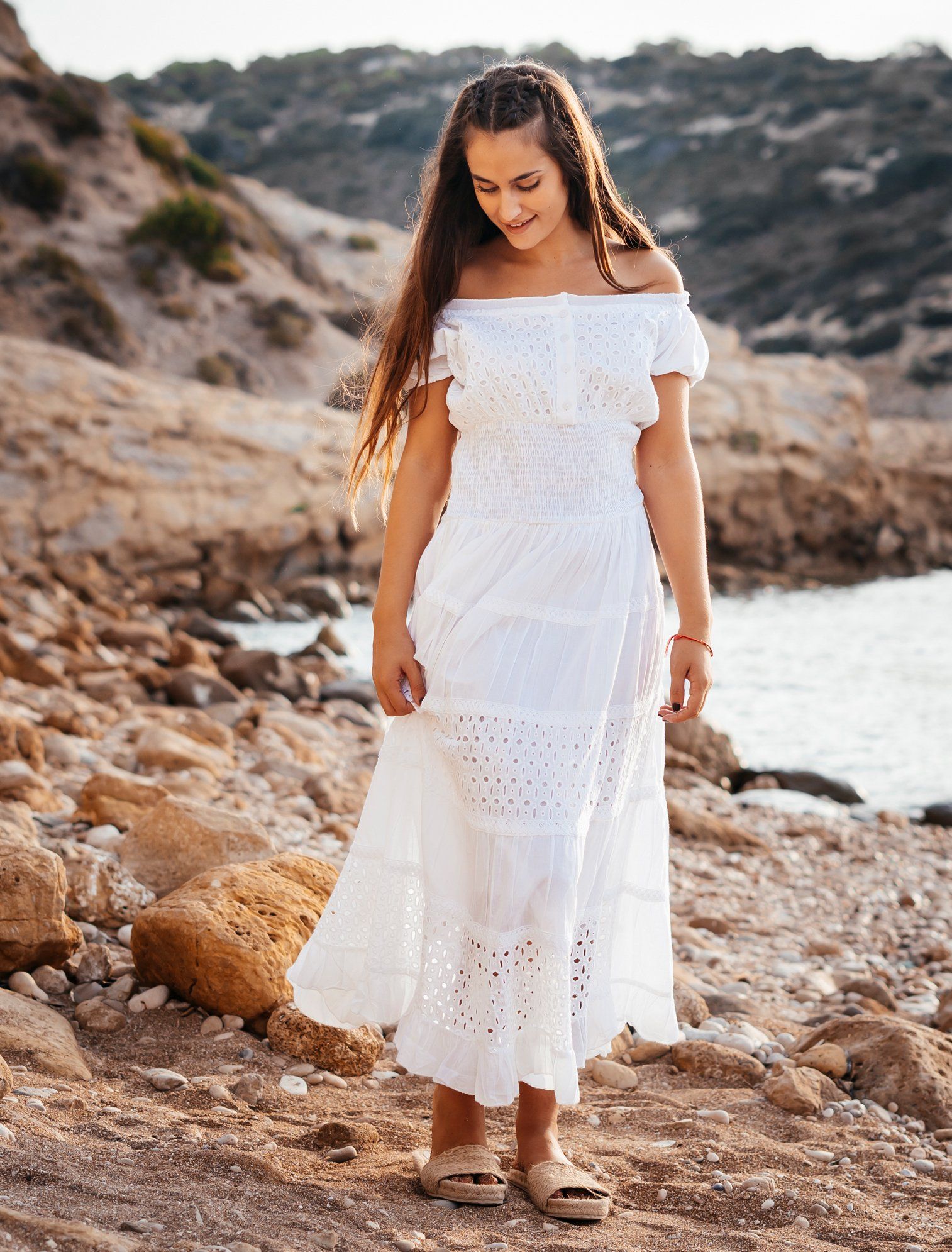 Maxi Trắng Trễ Vai Cotton Isla Bonita