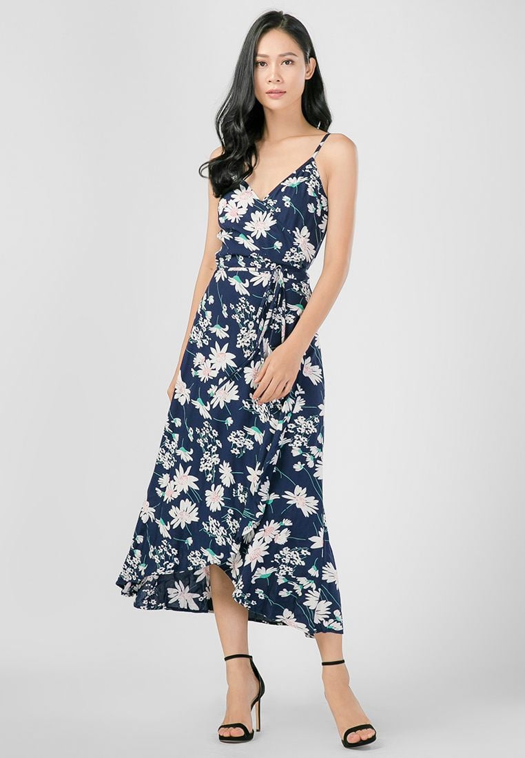Đầm maxi vạt đắp phối bèo thanh lịch và nữ tính.