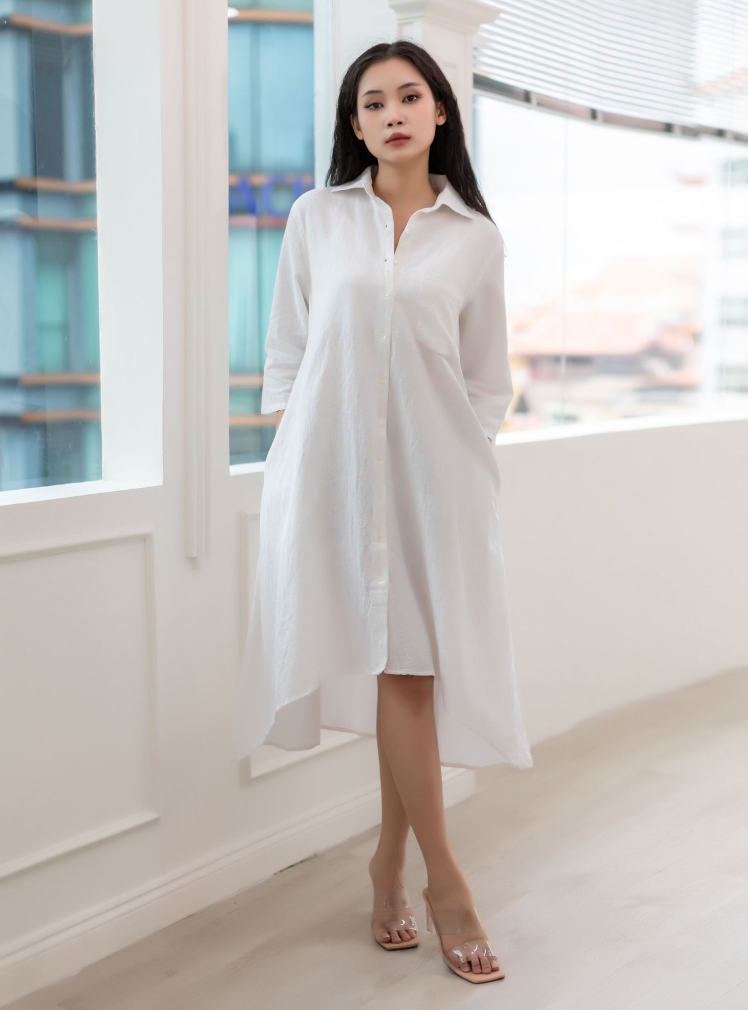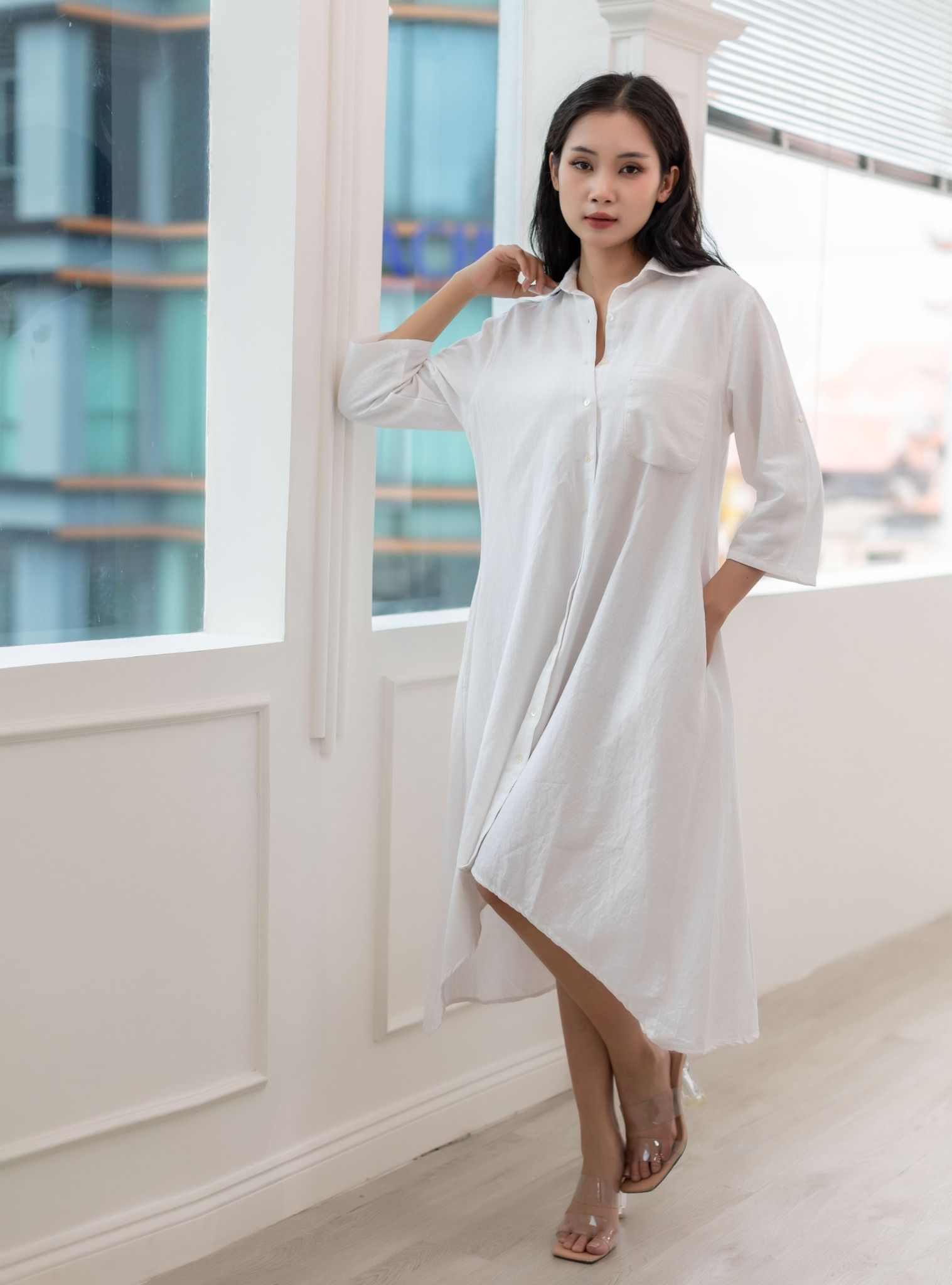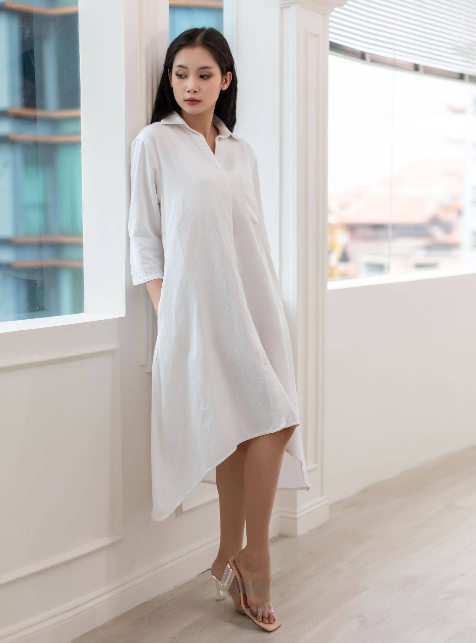 Đầm Midi Sơ Mi Trắng Cotton Isla Bonita