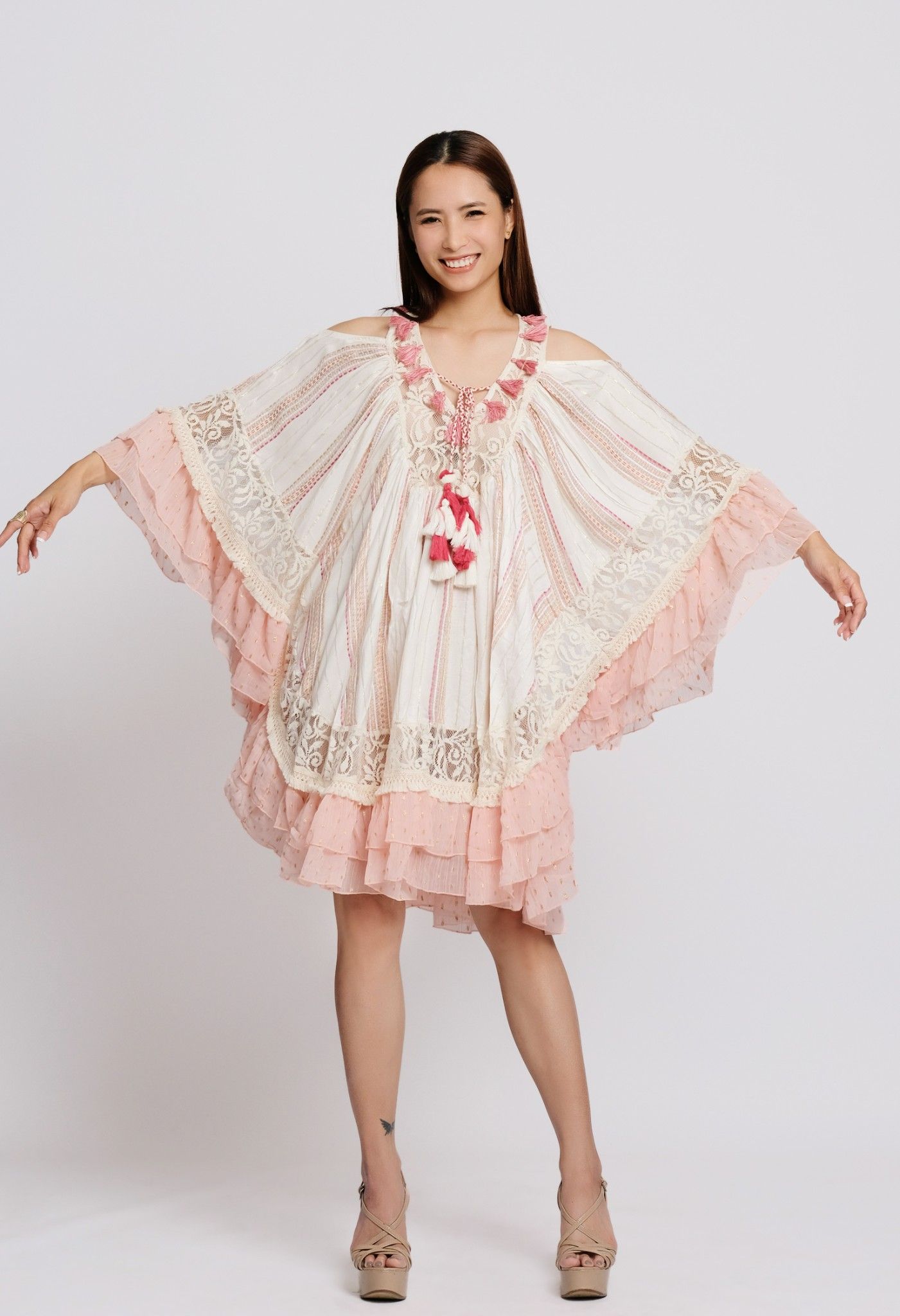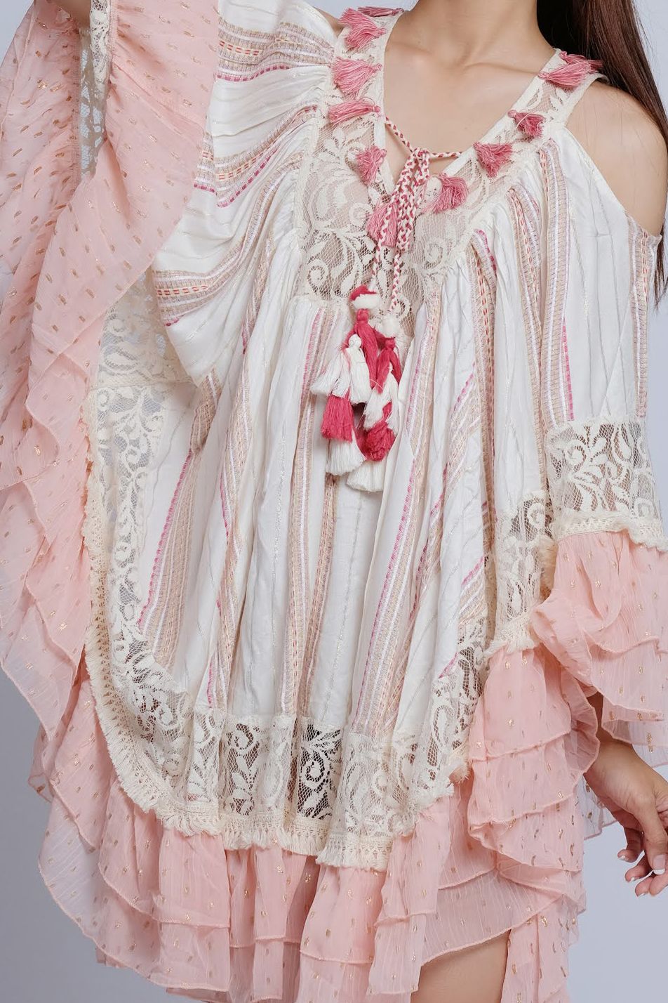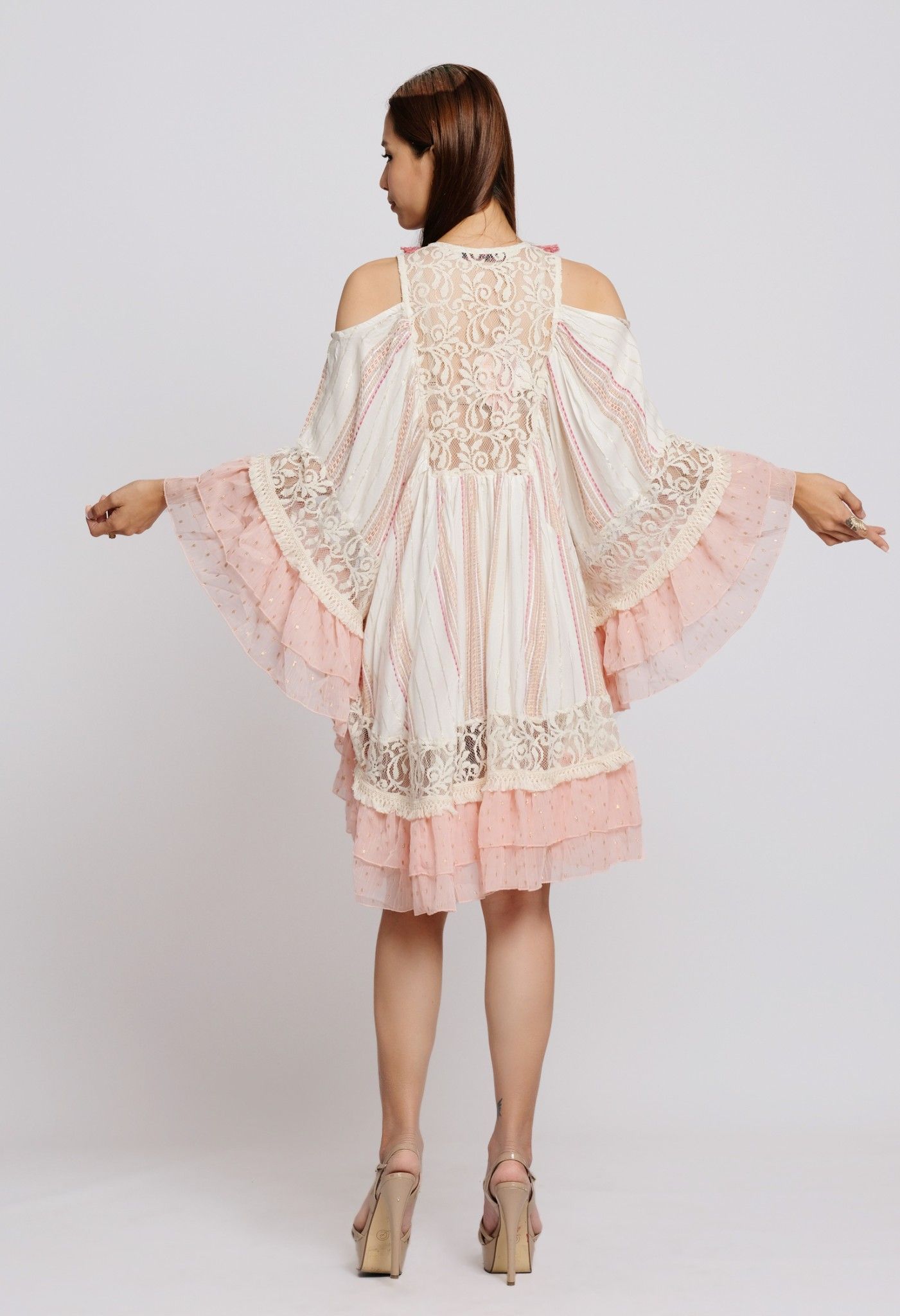 Phối ren ở tay, ngực và thân sau. Ánh kim rất nhẹ.