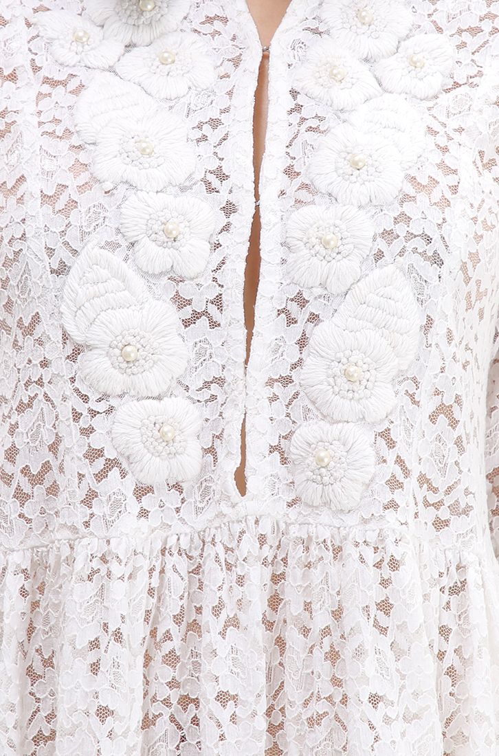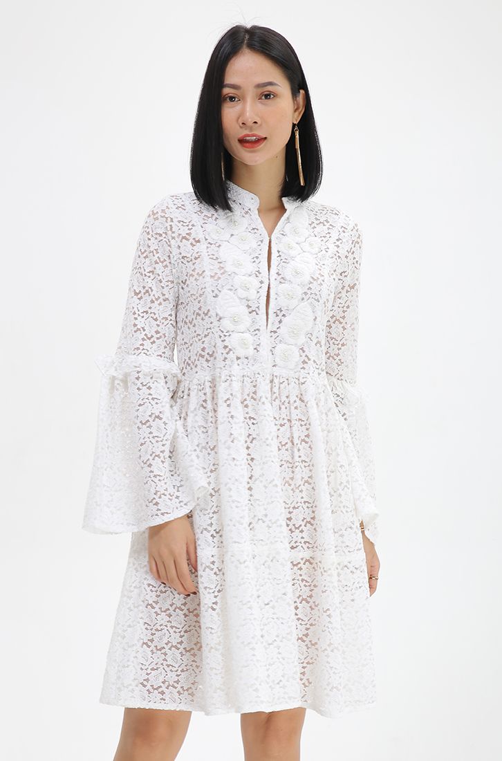 Tay loe quý phái, thêu hoa dọc ngực.