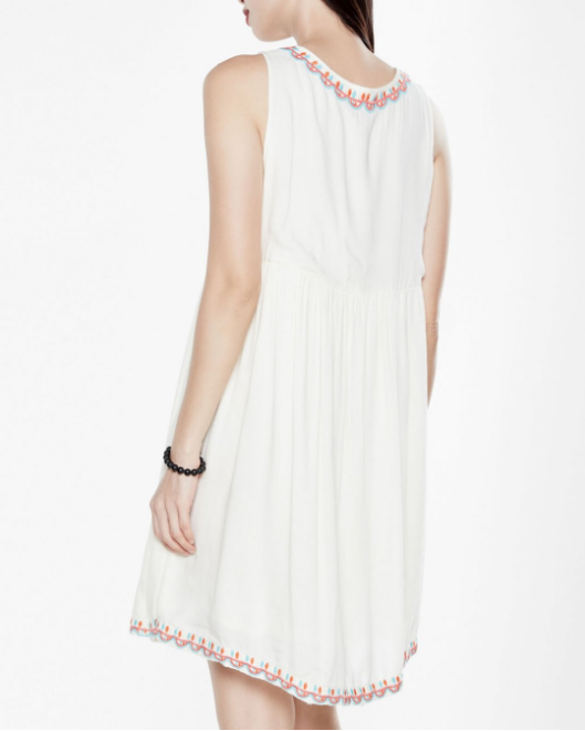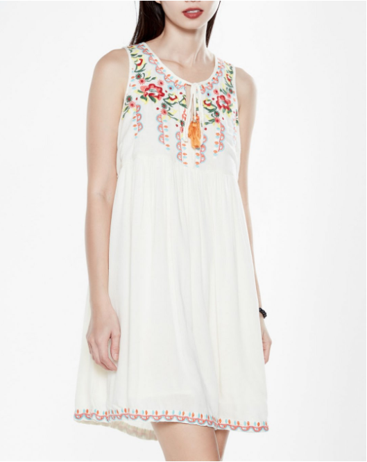 Đầm sát nách Boho kem màu sắc tươi sáng, thêu hoa nữ tính.