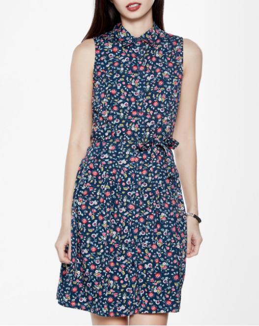 Đầm Sát Nách Thắt Nơ Eo Floral form đầm sơ mi, họa tiết hoa nữ tính, trẻ trung.